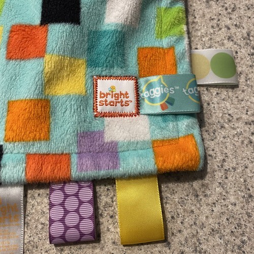 Taggies Aqua Lovey Squares Security Baby Blanket Teether Tags Bright Starts. CLOTHING AND FABRIC ITEMS: All clothing and fabric items have been steam cleaned and/or washed per standards.