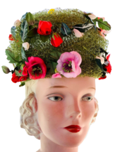 VTG Womens HAT Jille ORIGINAL Garden Party Flowers Netting Pillbox 1950s Church .It is small 21" circumference. In absolutely mint condition.