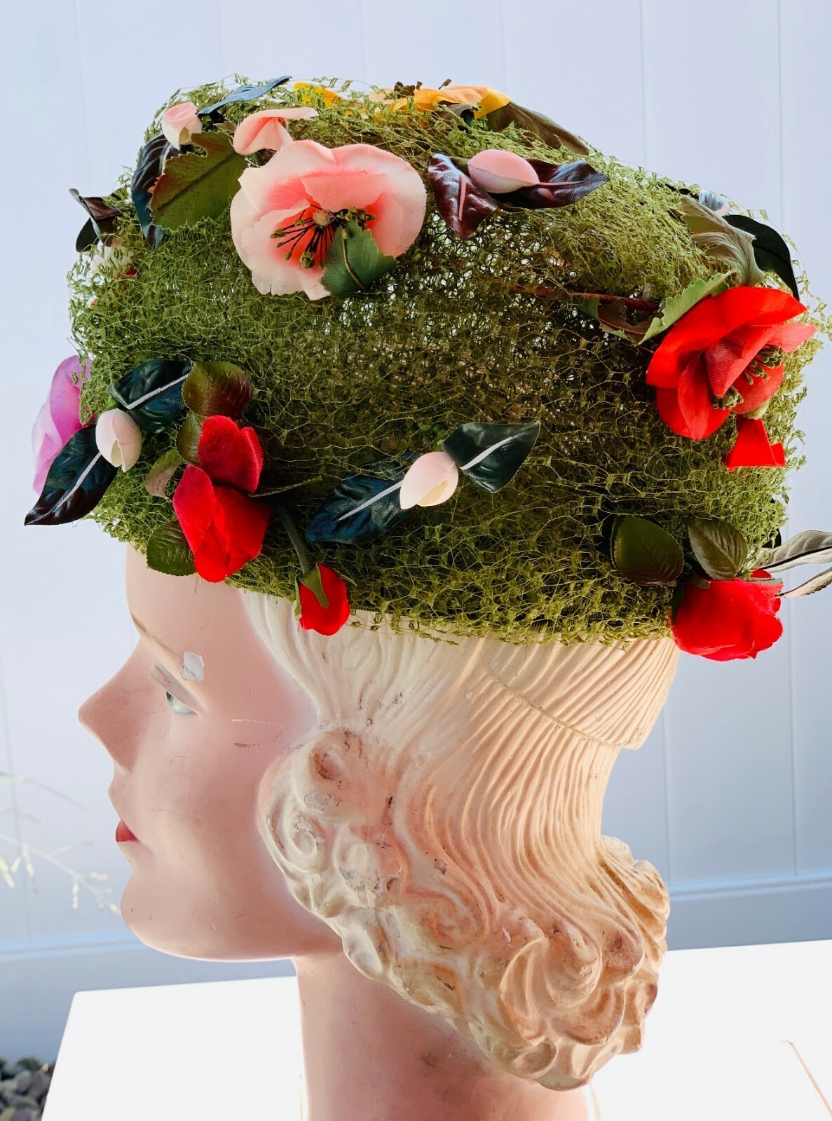 VTG Retro Womens HAT Jille ORIGINAL Garden Party Flowers Netting Pillbox 1950s