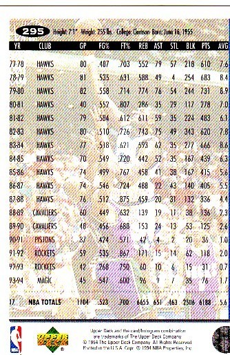 G) 1994-95 Upper Deck Collector's Choice Card Tree Rollins #295 Orlando Magic