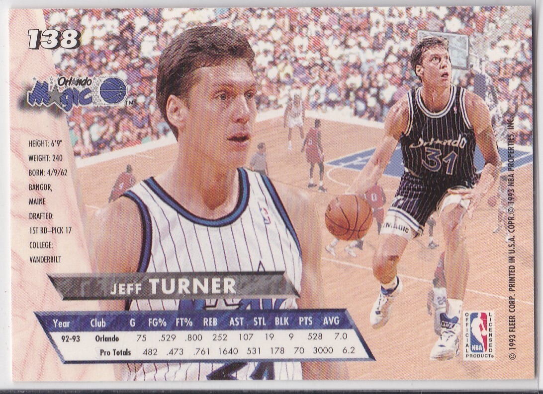 M) 1993-94 Fleer Ultra Basketball Trading Card Jeff Turner #138