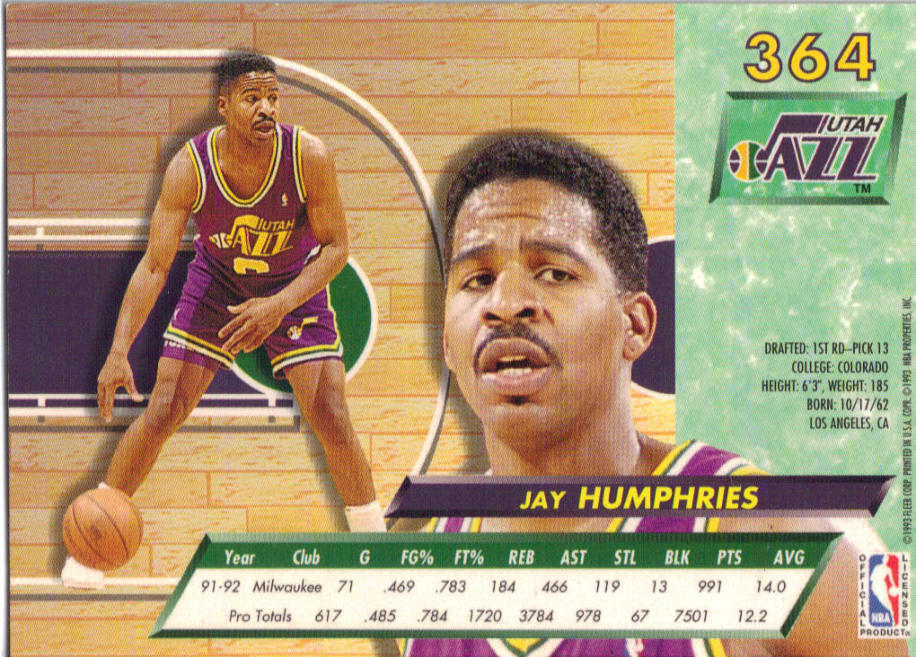 M) 1992-93 Fleer Ultra NBA Basketball Trading Card Jay Humphries# 364 Utah Jazz