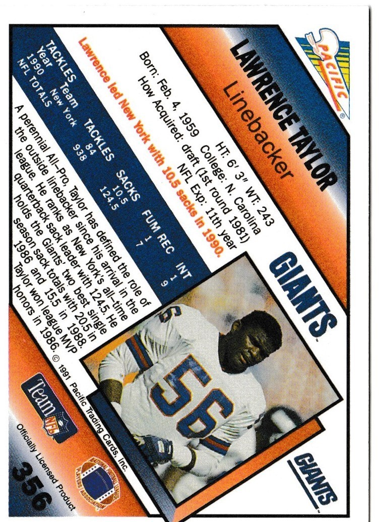 1991 Pacific Lawrence Taylor New York Giants #356 Football Card