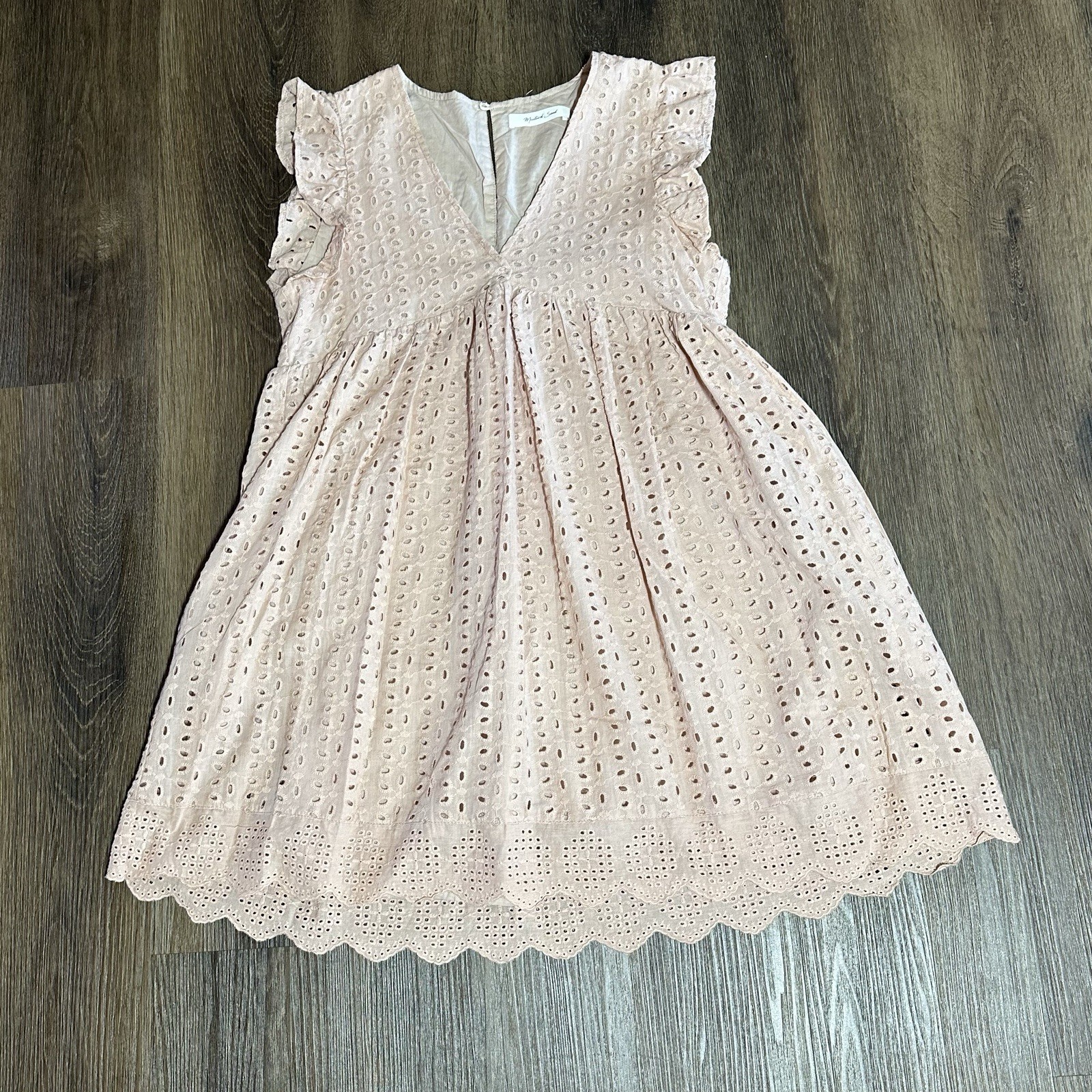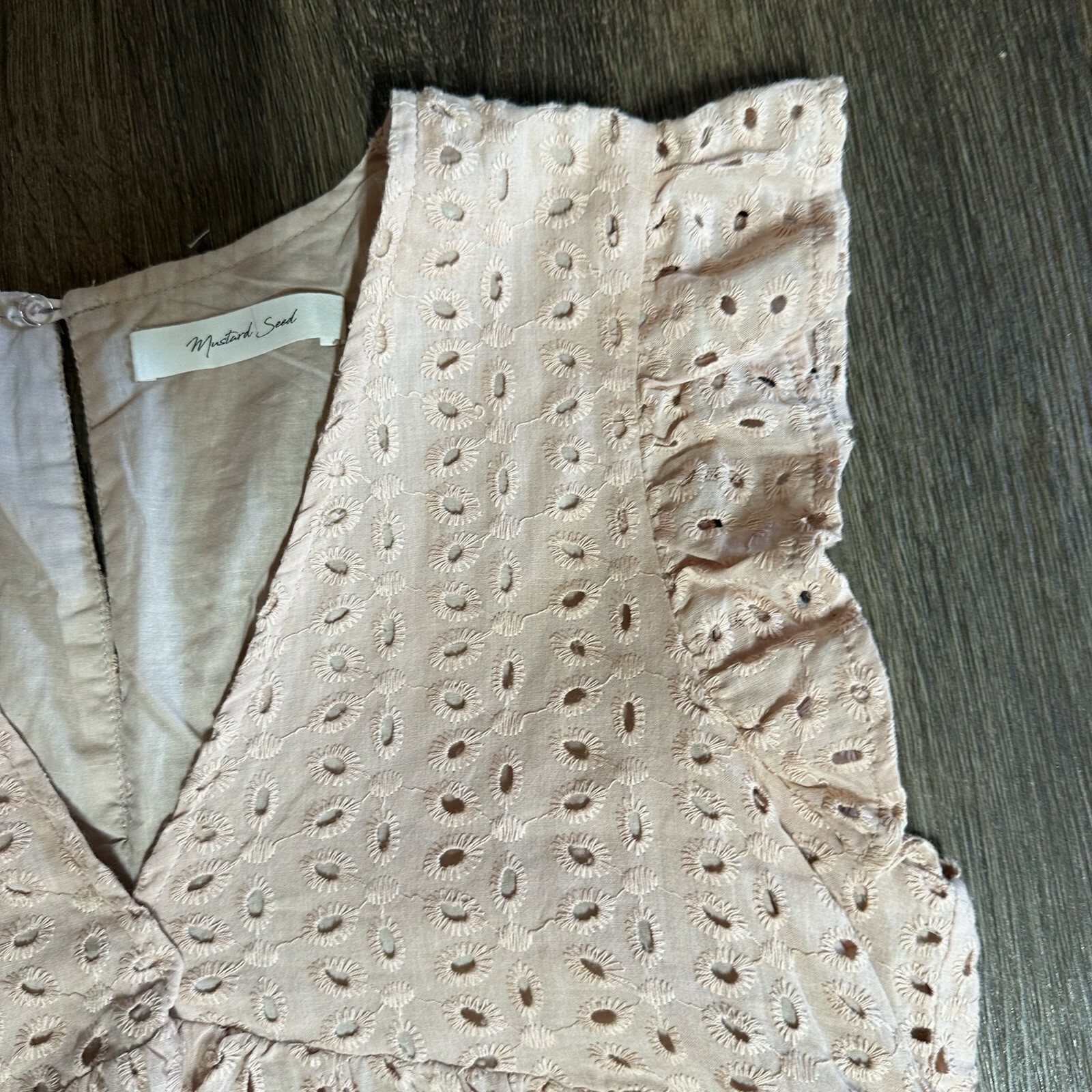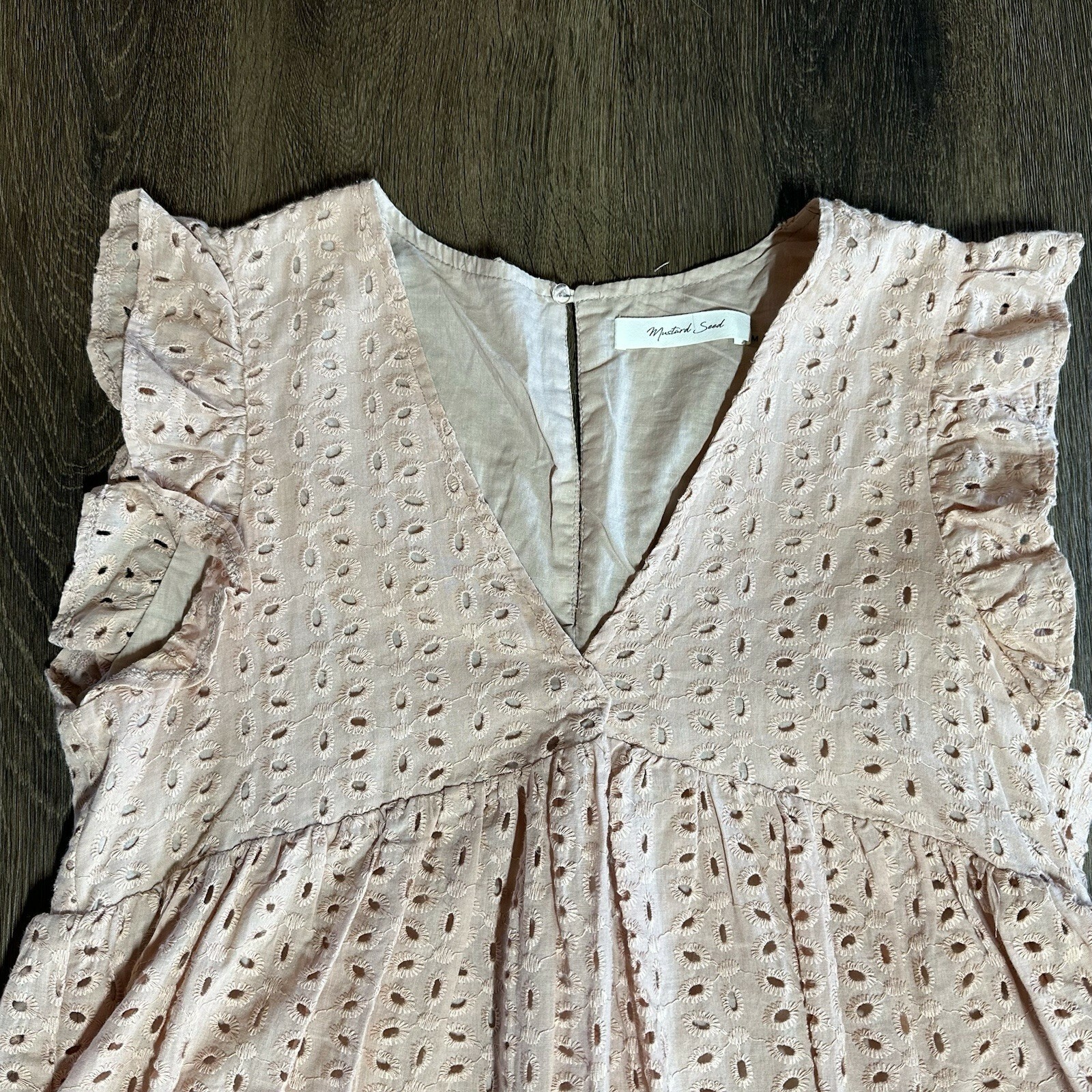 Mustard Seed Mini Dress Eyelet Babydoll Lined Dainty Flutter Sleeve Blush Pink M