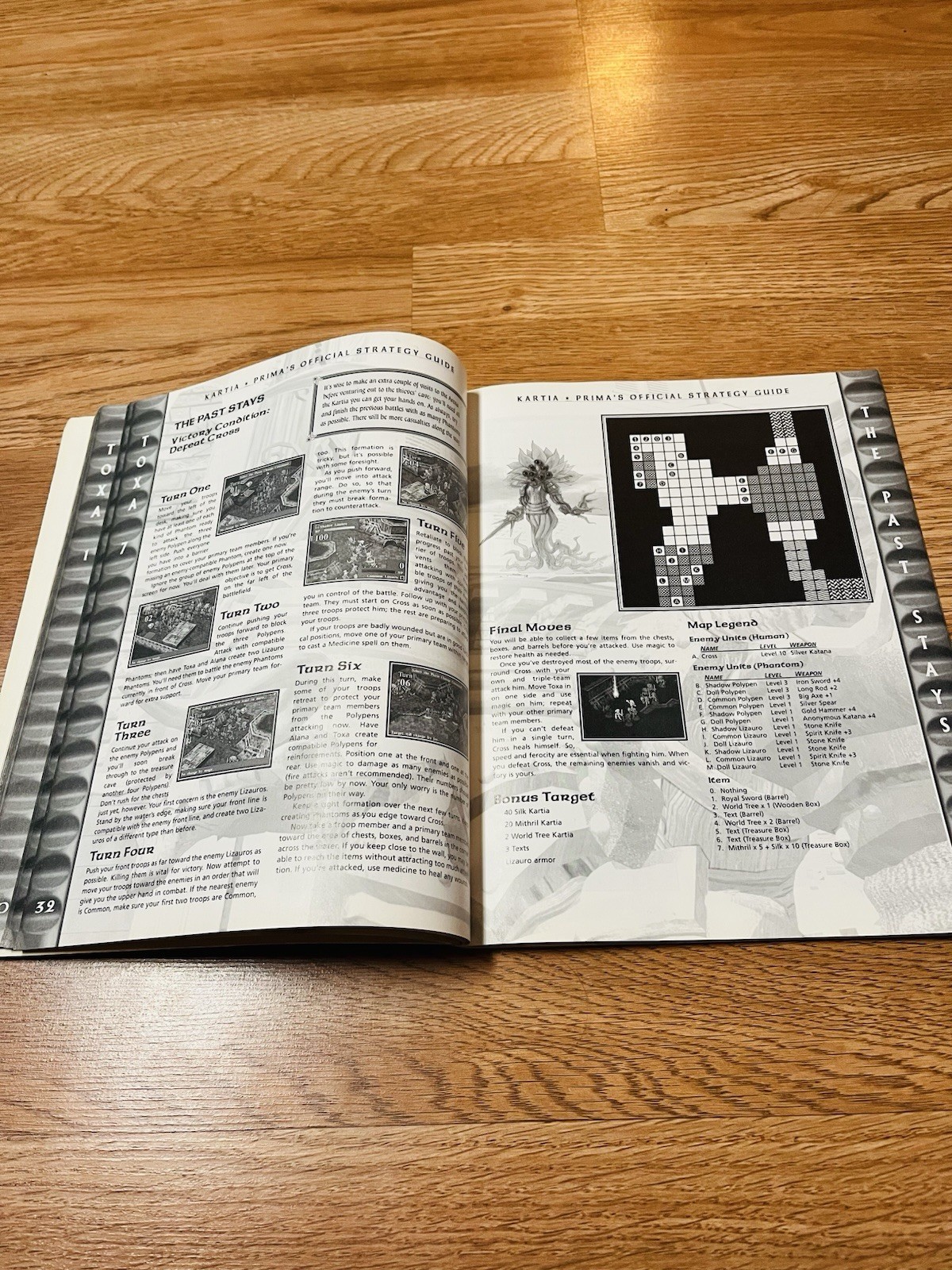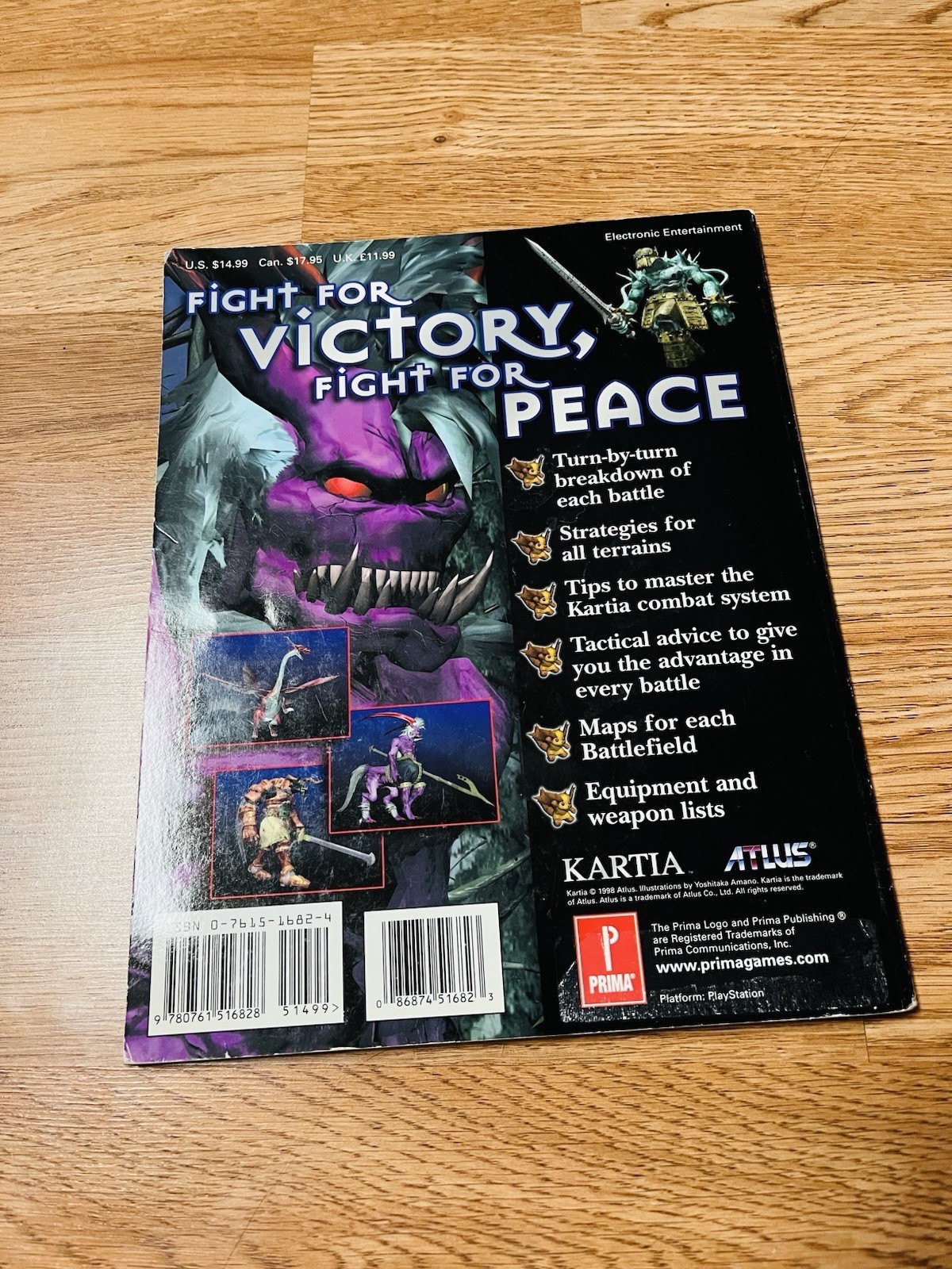 PS1 Rare Strategy Prima Guide Kartia! Preowned/Used 1 owner etc.The book is complete with all 93+ pages with front and back covers.Includes a little coloring artwork from the amazing game as well.