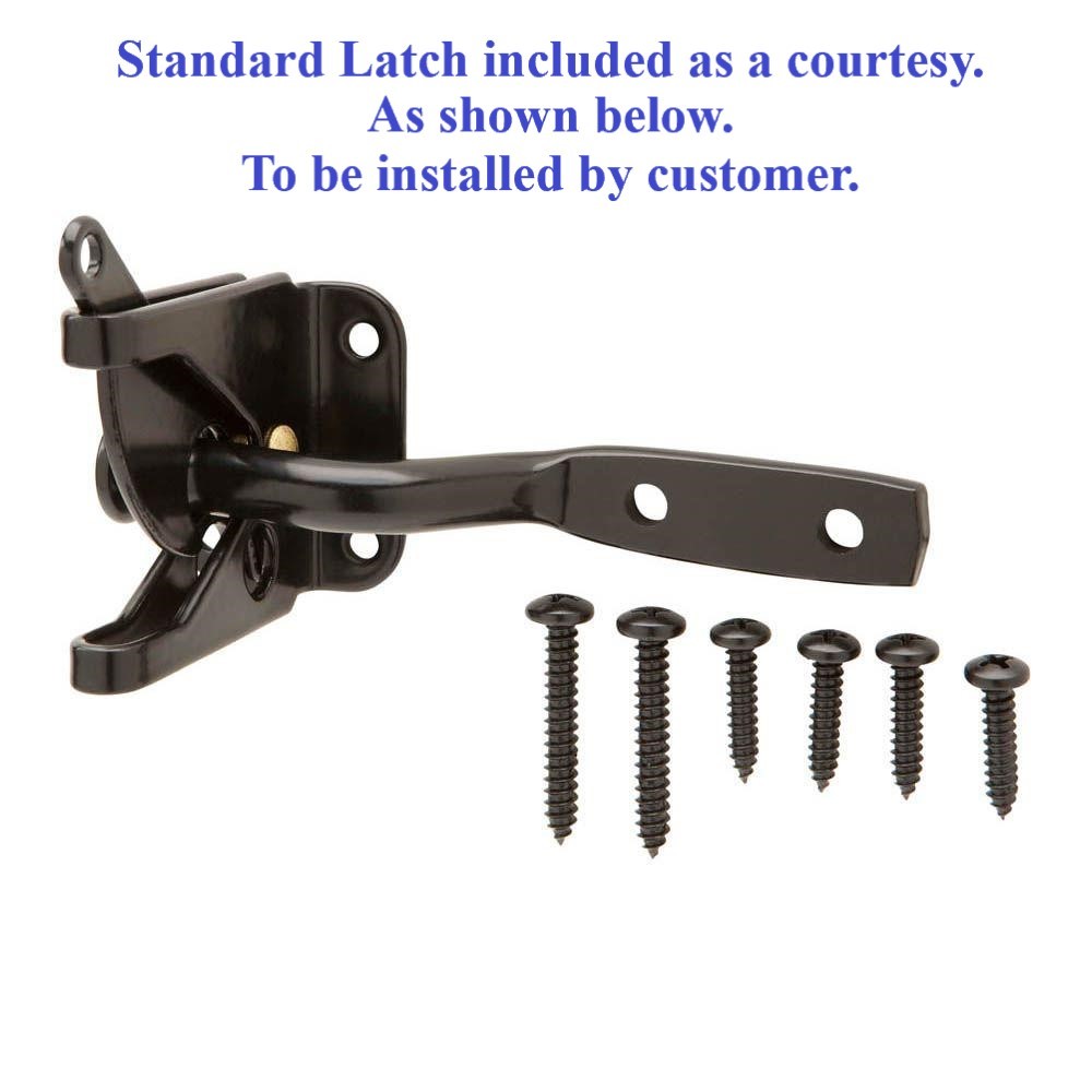 6. Fabricated with 1 or 2 standard 2 1/8" holes for standard lever and bolt lock. Customer supplies lever and bolt lock. Customer decides hinge side and gate swing.
