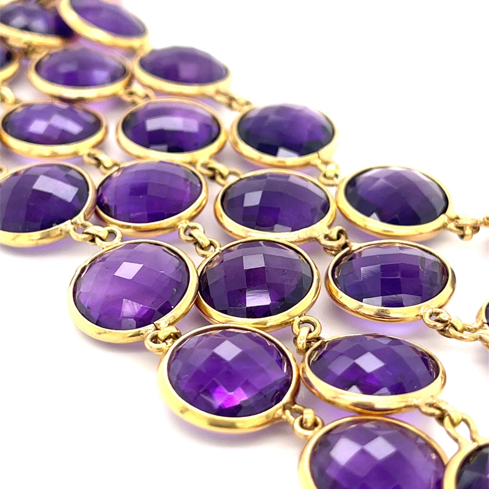 18k oro da 170ctw a doppia cabochon collana di fili Ametista 38 "81,3g