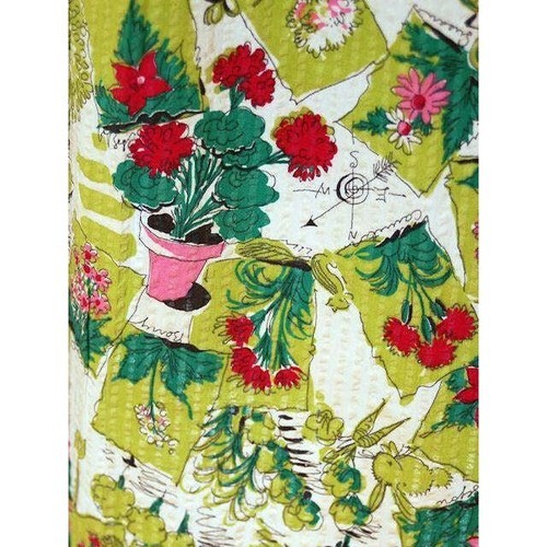 VTG 50s Billie Barnes Day Dress S Cotton Seersucker Potted Plant Print Sz S