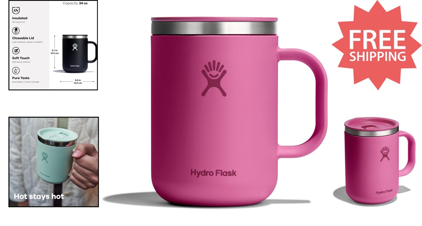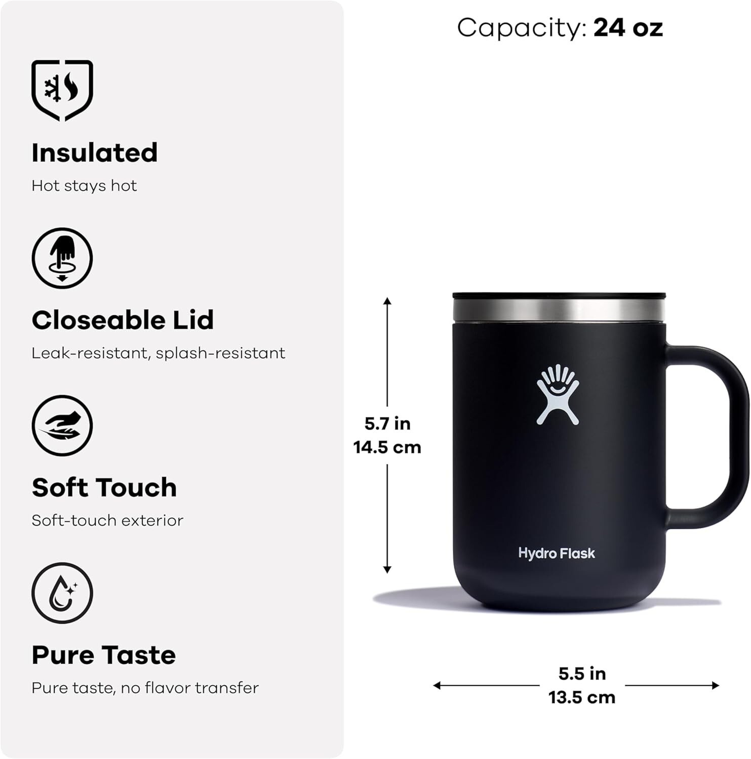 Experience all-day hydration with the Hydro Flask 24 oz Stainless Steel Insulated Mug. Crafted with durable pro-grade stainless steel, this mug ensures pure taste without flavor transfer. Its double-wall vacuum insulation and TempShield technology keep your beverages hot or cold for hours, making every sip perfect. The soft-touch exterior and ergonomic handle offer a comfortable, secure grip, while the leak-resistant, splash-resistant lid provides peace of mind on the go. Ideal for big brews, this mug is designed for durability and convenience. To ensure fast and reliable delivery, we work with multiple fulfillment partners and suppliers. Depending on availability and location, your order may ship from different warehouses or arrive in packaging that varies from item to item. Tracking details are typically provided shortly after shipment, and customer satisfaction remains our top priority. Please note that due to carrier policies and regional regulations, certain items may not be eligible for delivery to specific states or territories.
