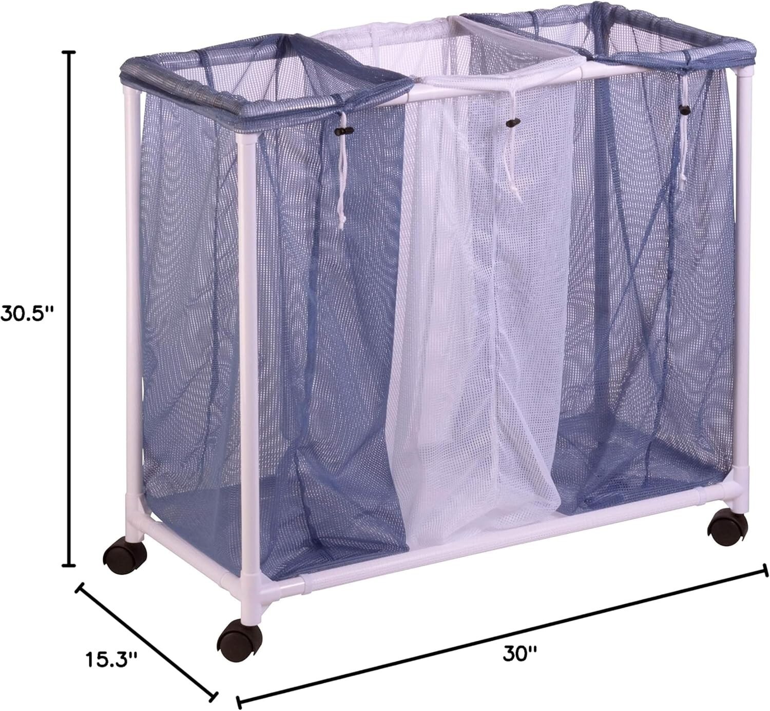 Elegant 3 Compartment Mesh Laundry Sorter with Rolling Wheels, 30.5" x 15.3"