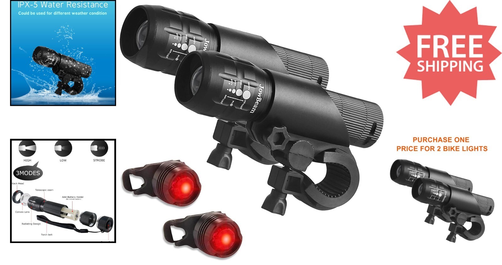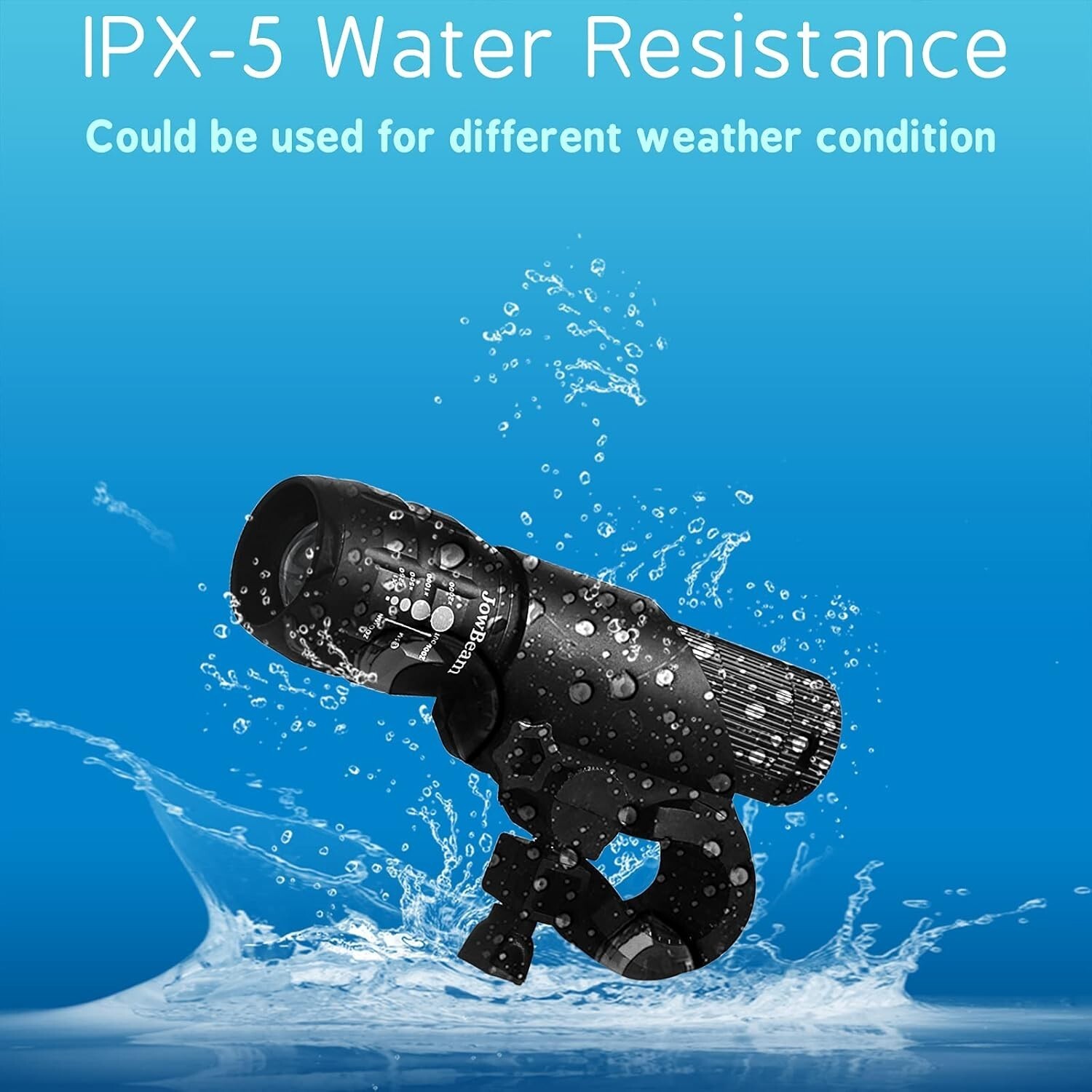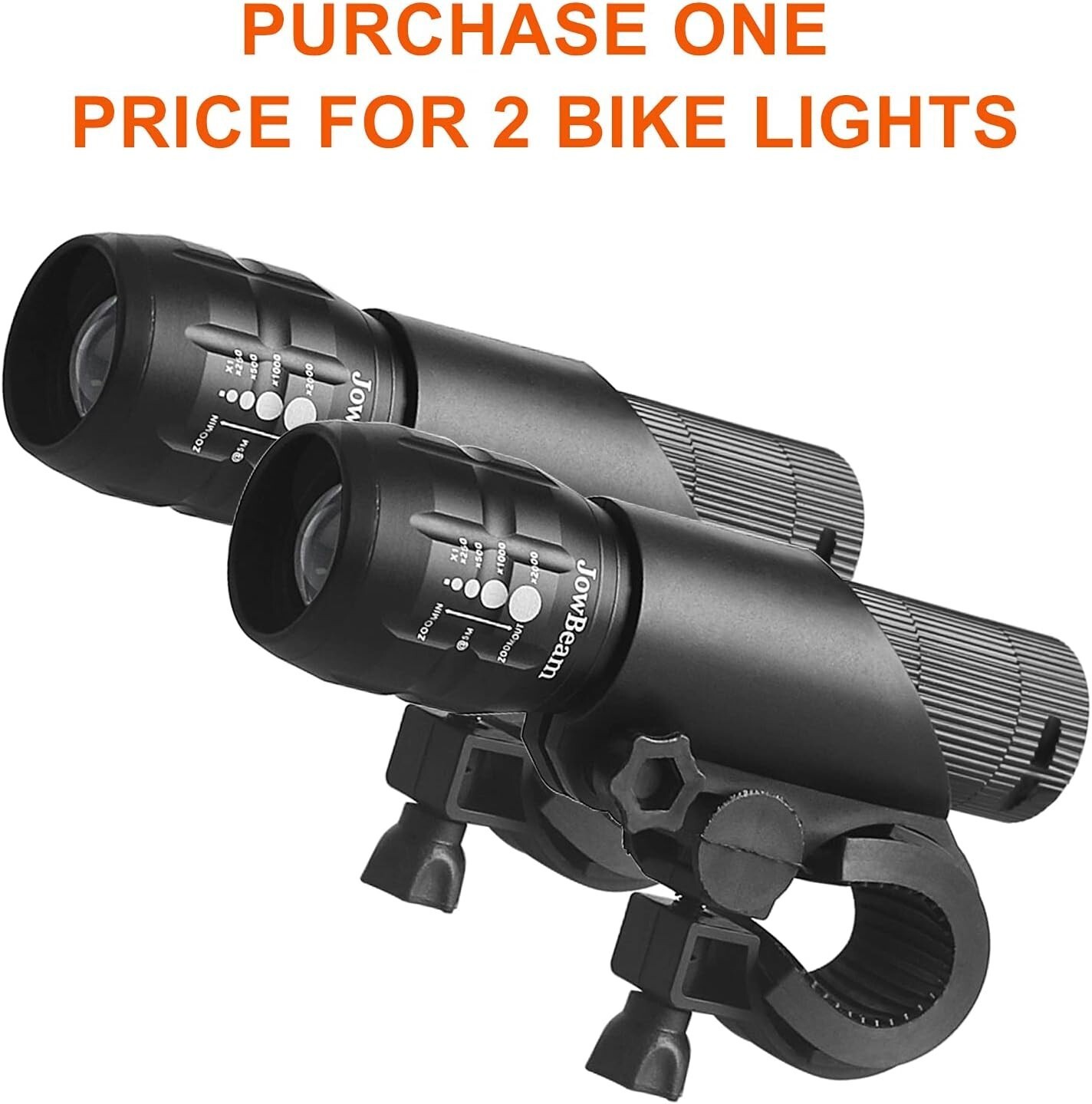 Experience ultimate illumination with the Ultra Bright Long Lasting Tactical MTB Flashlight. Equipped with a high-efficiency LED chip, it offers over 50,000 hours of reliable performance. With adjustable brightness from 80 to 1000 lumens and a beam distance of 200 meters, it ensures safety in any environment. The versatile design features three light modes?high, medium, and flash?plus a zoom function that switches from expansive floodlight to intense spotlight, reaching up to 600 feet. Compact and lightweight (4.72 inches long), this waterproof, rain-resistant torch fits easily in your pocket or gear, making it perfect for cycling, hiking, camping, and more. Includes two sets with headlamps, tail lights, and mounts, allowing multiple configurations for bikes or as handheld flashlights. Power it with three AAA batteries (not included). Elevate your outdoor adventures with Jowbeam?s trusted lighting solutions, backed by 25 of expertise.