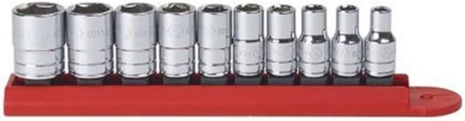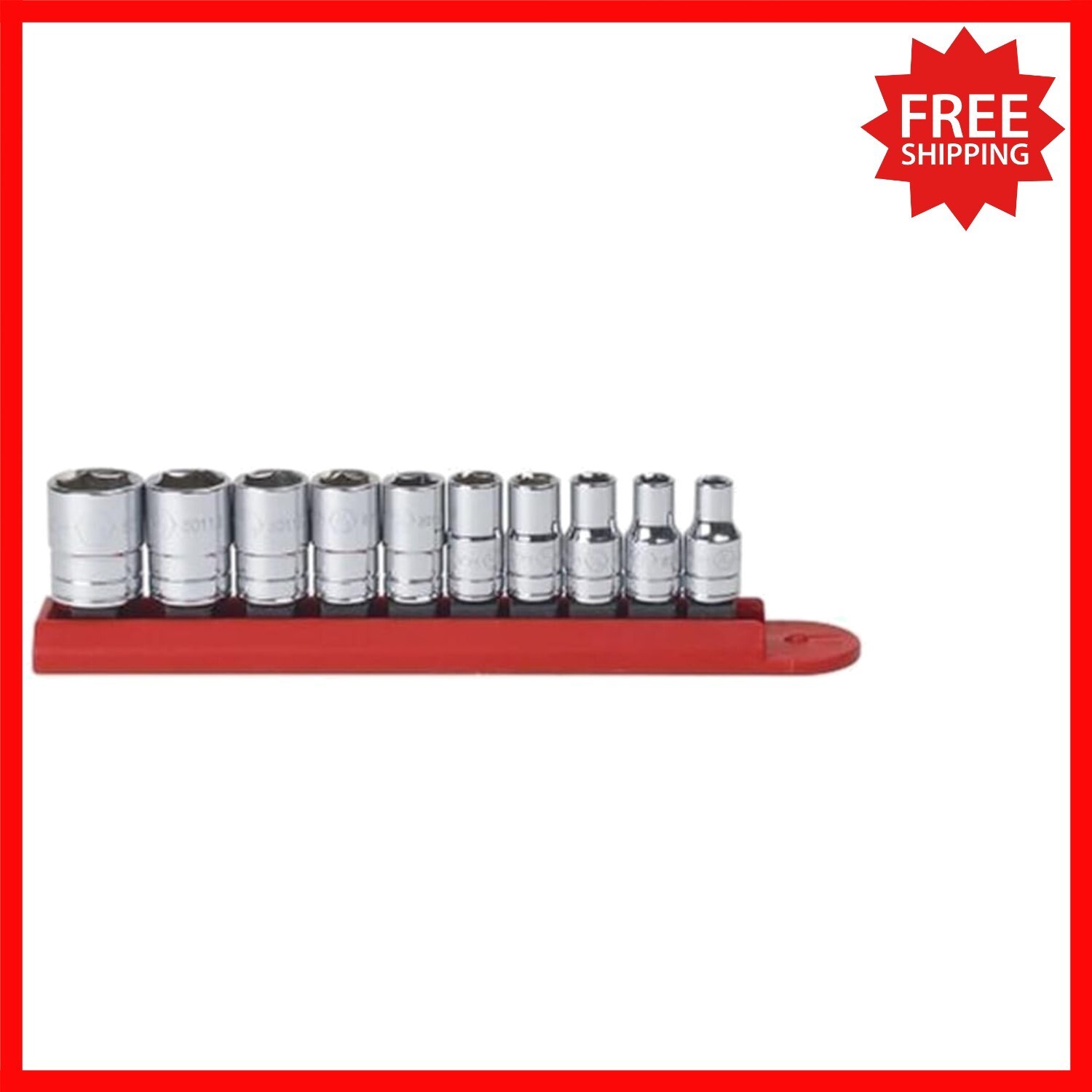 Upgrade your toolkit with the KD Tools 10 Piece 1/4-Inch Drive 6 Point SAE Socket Set. Crafted from fully polished, nickel chrome plated alloy steel, these sockets offer durability and corrosion resistance. Featuring large, hard-stamped size markings on both sides and quick SAE identification rings at the base, finding the right socket has never been easier. The chamfered opening quickly guides fasteners into the socket, while the turn-down at the base provides an excellent grip for easy removal from ratchets. Packaged on a convenient clip rail, this set includes 3/16-inch to 9/16-inch 6-point sockets, perfect for a wide range of applications. Built to last with a lifetime manufacturer's , this set combines precision, ease of use, and reliability. To ensure fast and reliable delivery, we work with multiple fulfillment partners and suppliers. Depending on availability and location, your order may ship from different warehouses or arrive in packaging that varies from item to item. Tracking details are typically provided shortly after shipment, and customer satisfaction remains our top priority. Please note that due to carrier policies and regional regulations, certain items may not be eligible for delivery to specific states or territories.