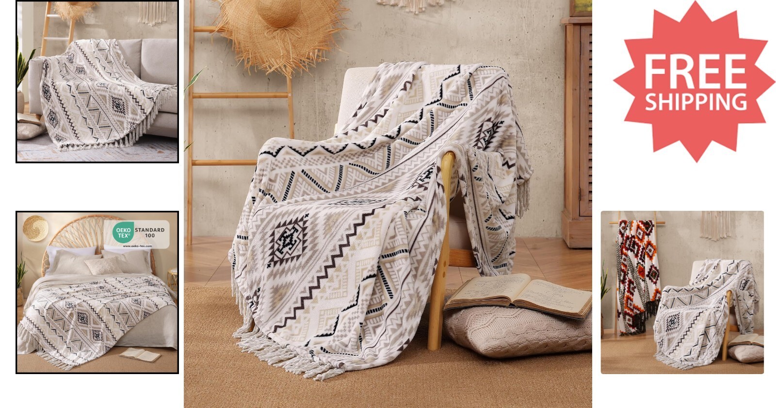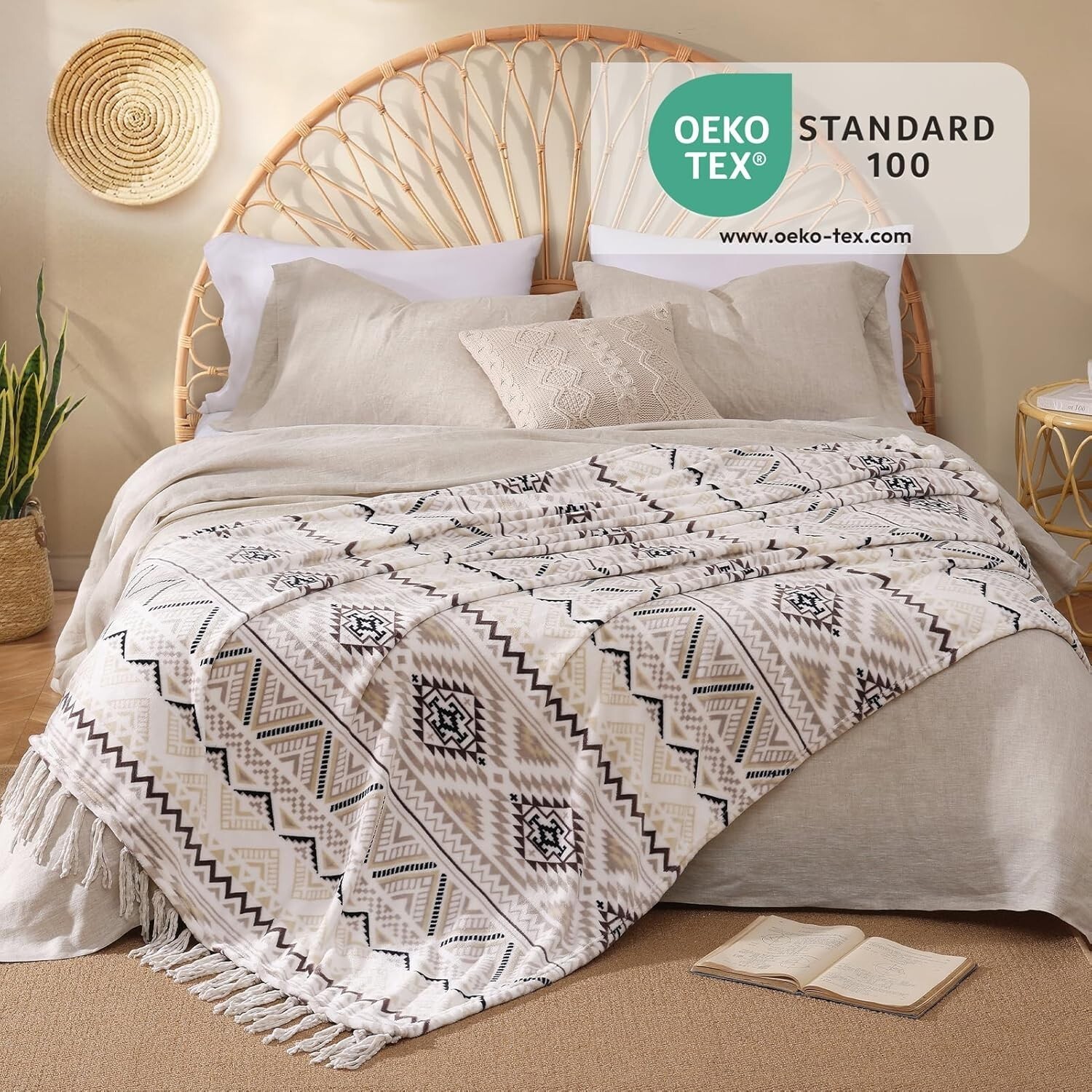 Ultra Soft Bohemian Throw Blanket - 50x60 Lightweight with Stylish Tassels