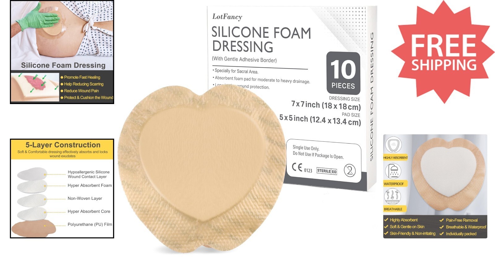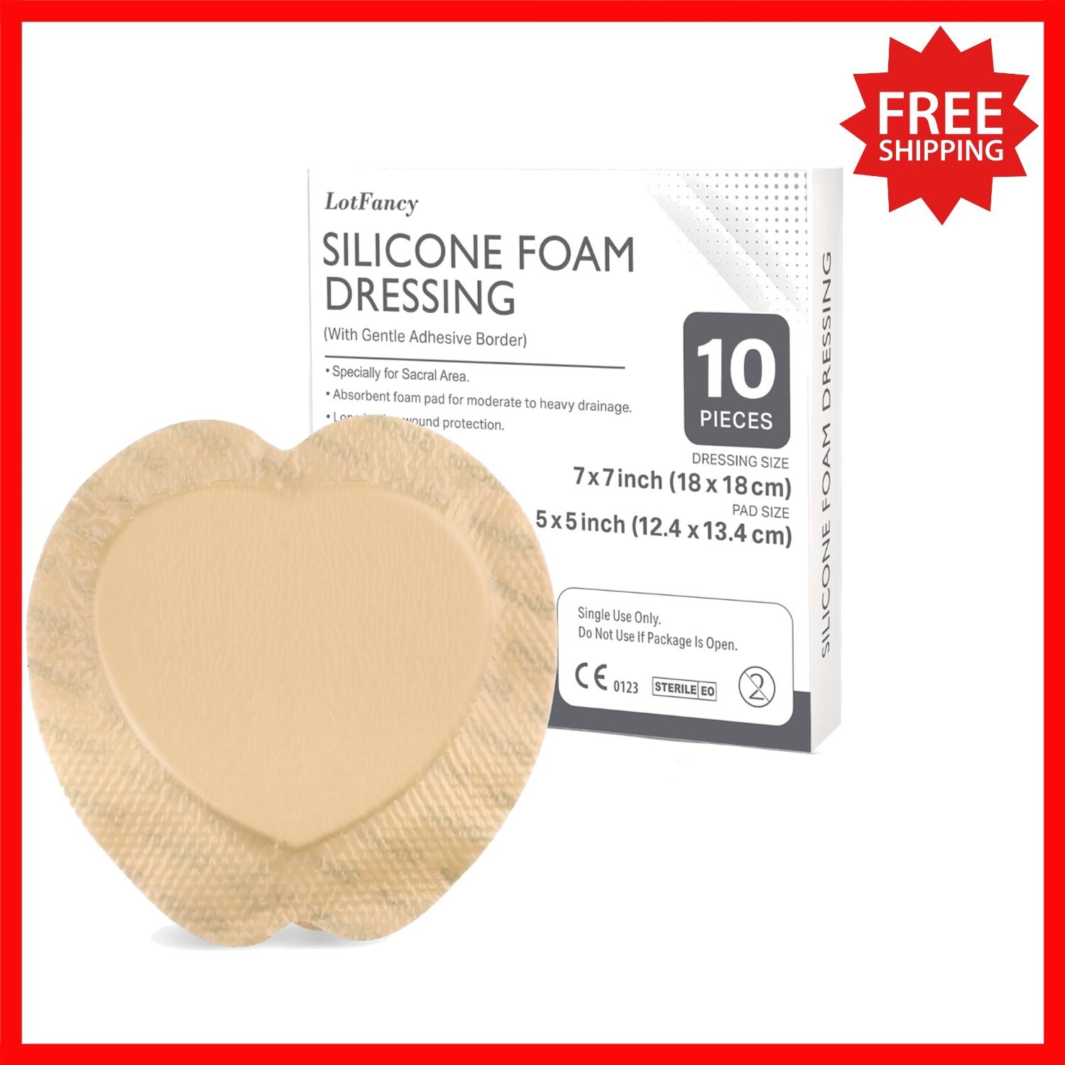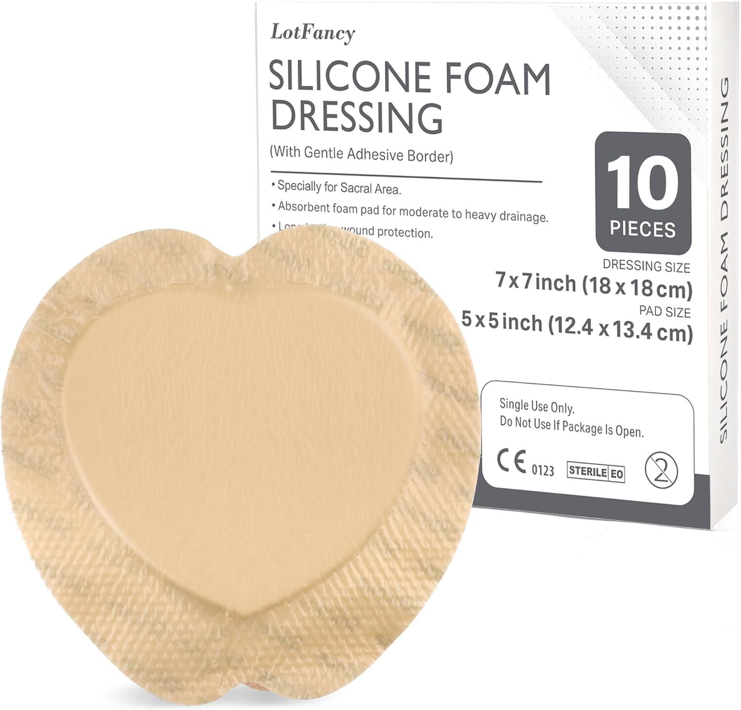 Sacral Foam Dressing 10 Count - 7x7, Highly Absorbent & Waterproof Wound Care