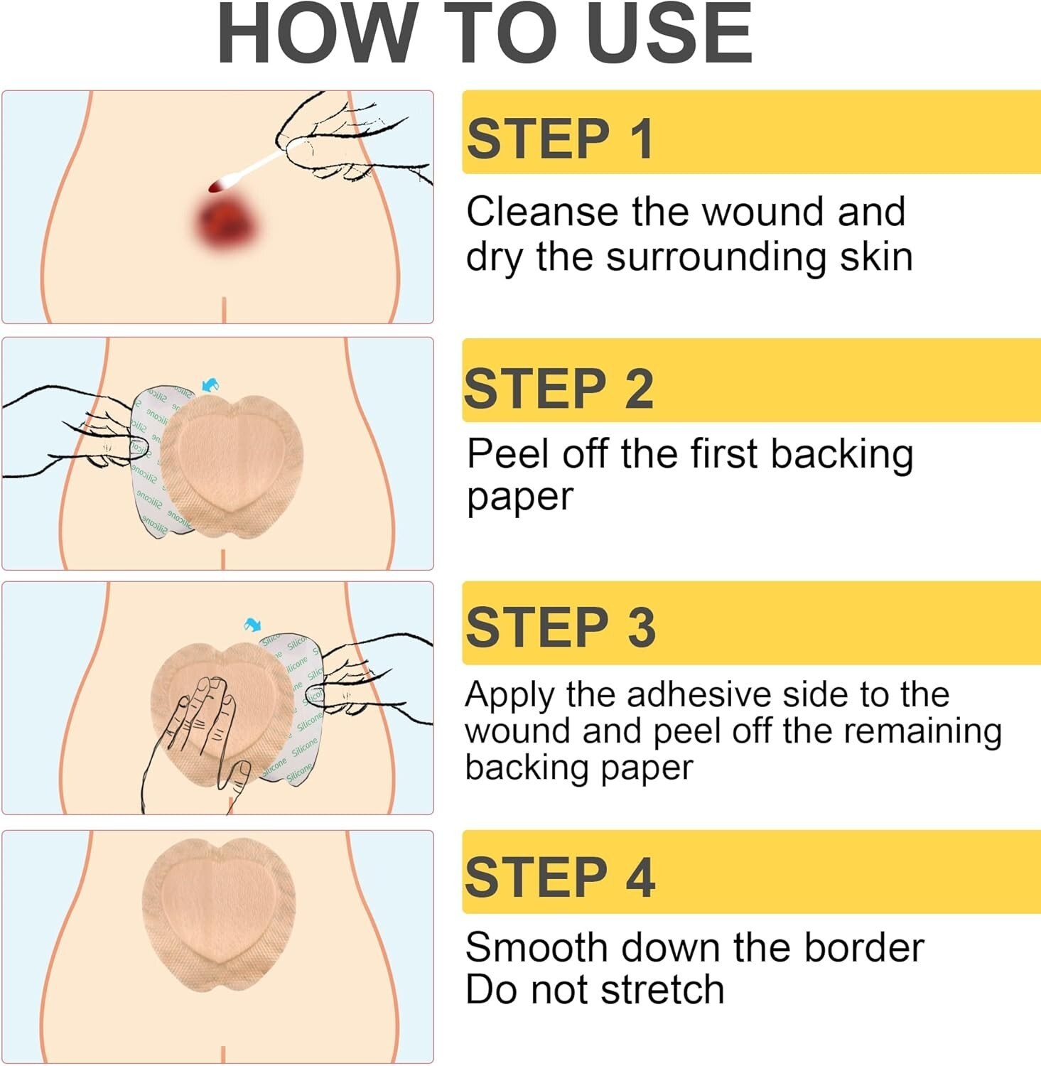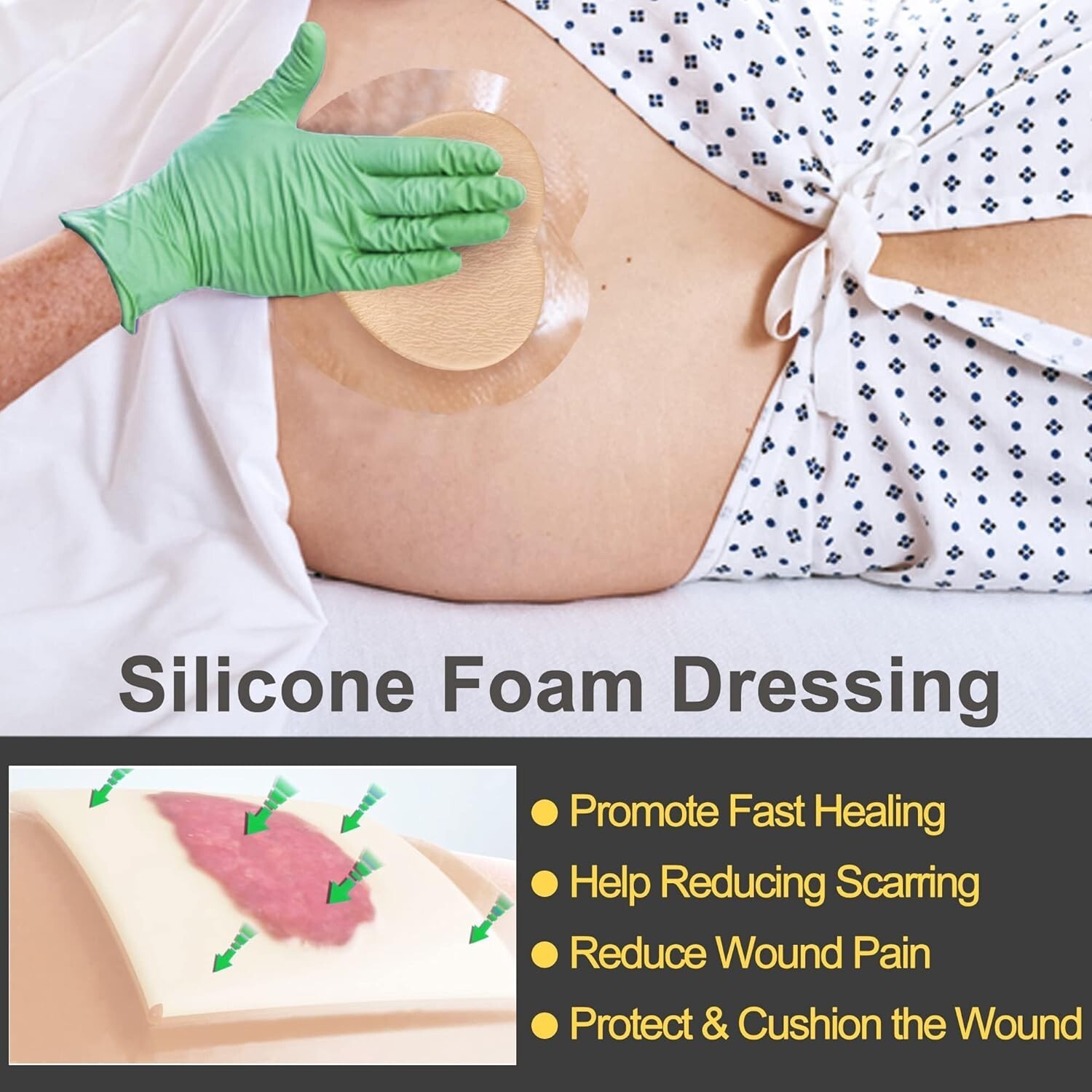 Gentle on skin and pain-free to remove, this dressing features a medical-grade hypoallergenic silicone layer that adheres securely without sticking to moist wounds, allowing for easy lifting and reapplication. The strong adhesive border ensures a firm fit, and removal causes no pain or adhesive residue.