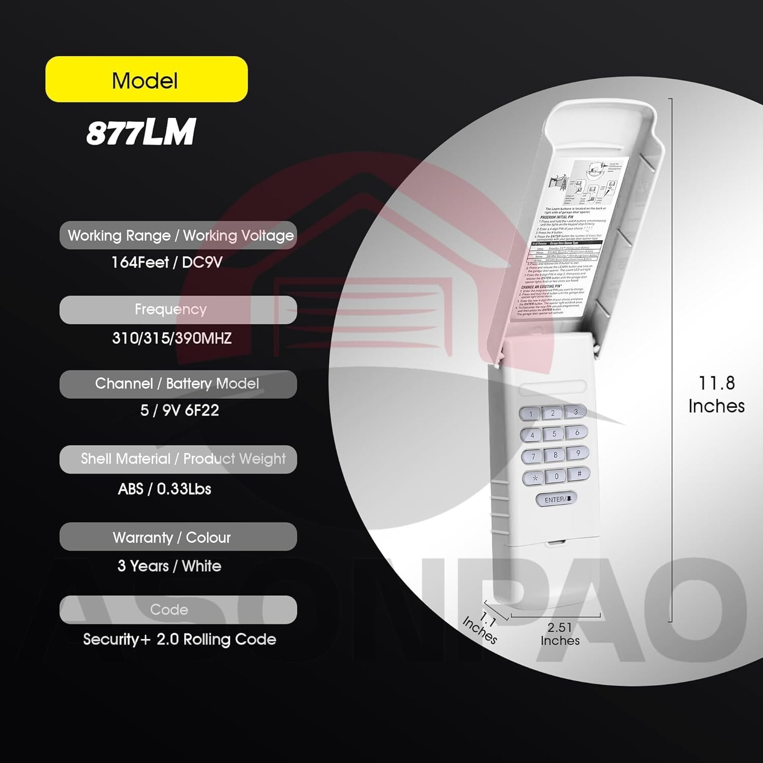Ergonomic Garage Door Keypad - LiftMaster 877LM with Advanced Security Features