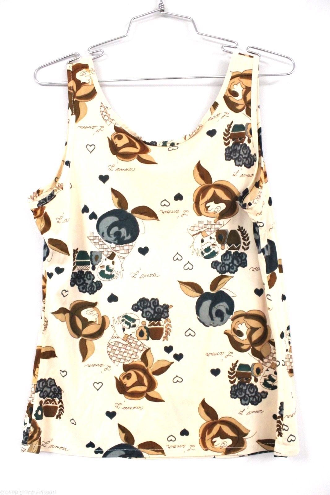 VTG 70s Womens Disco Blouse Tank Set Novelty Flapper Girl Print L'AMOUR 42B