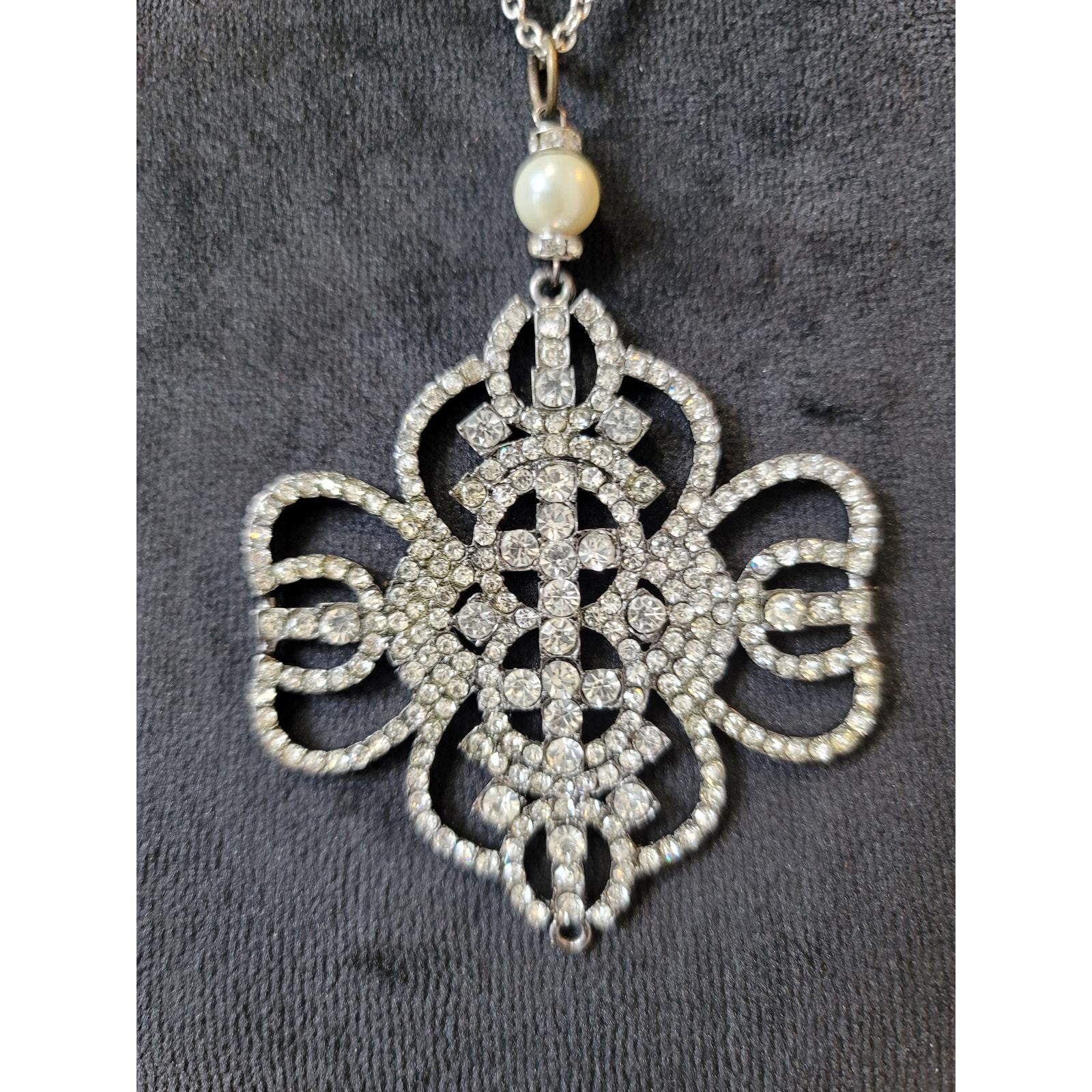 Trifari Women Rhinestone Pendant Necklace Pearl Accent And Lobster Claw Lock