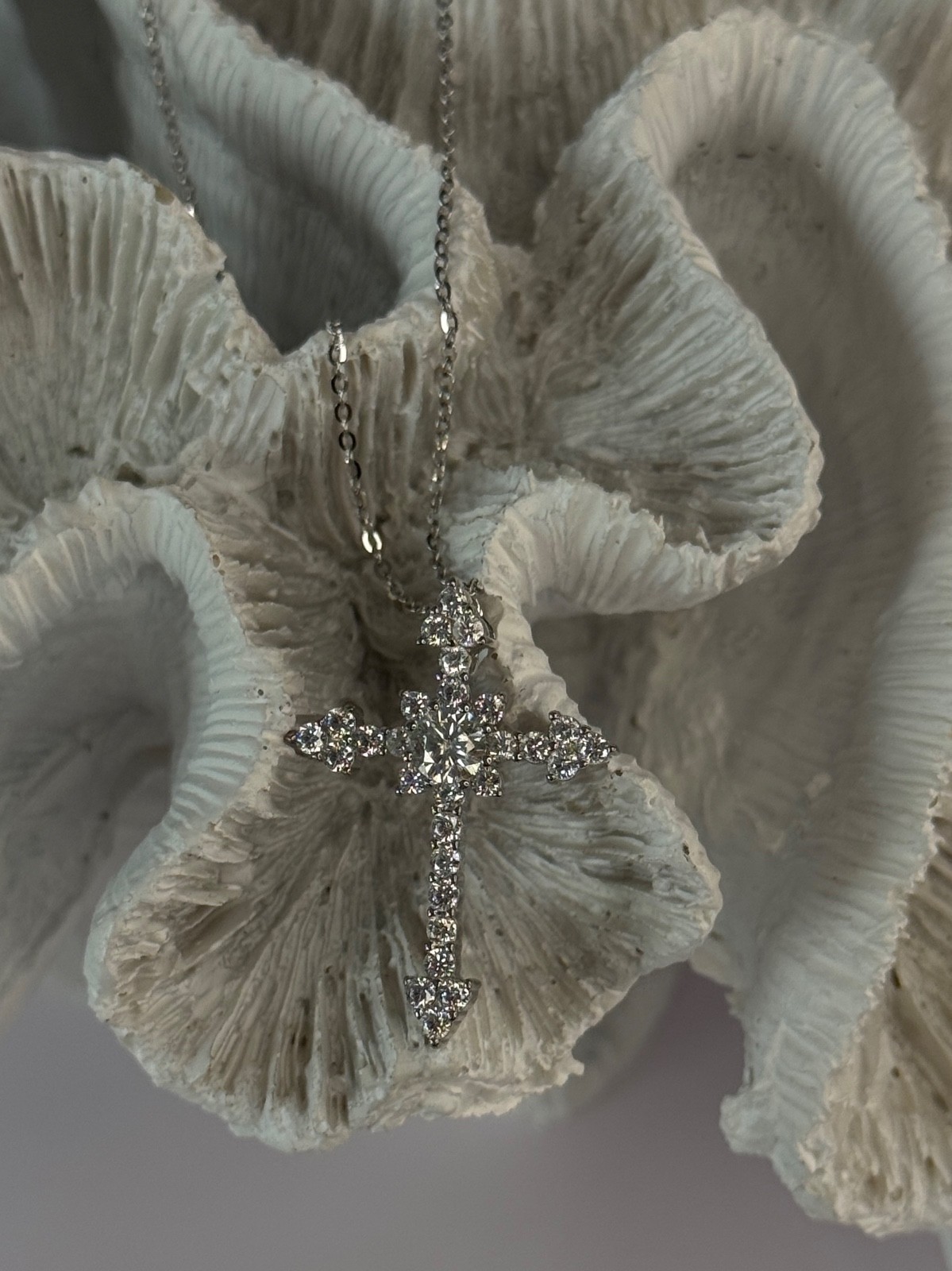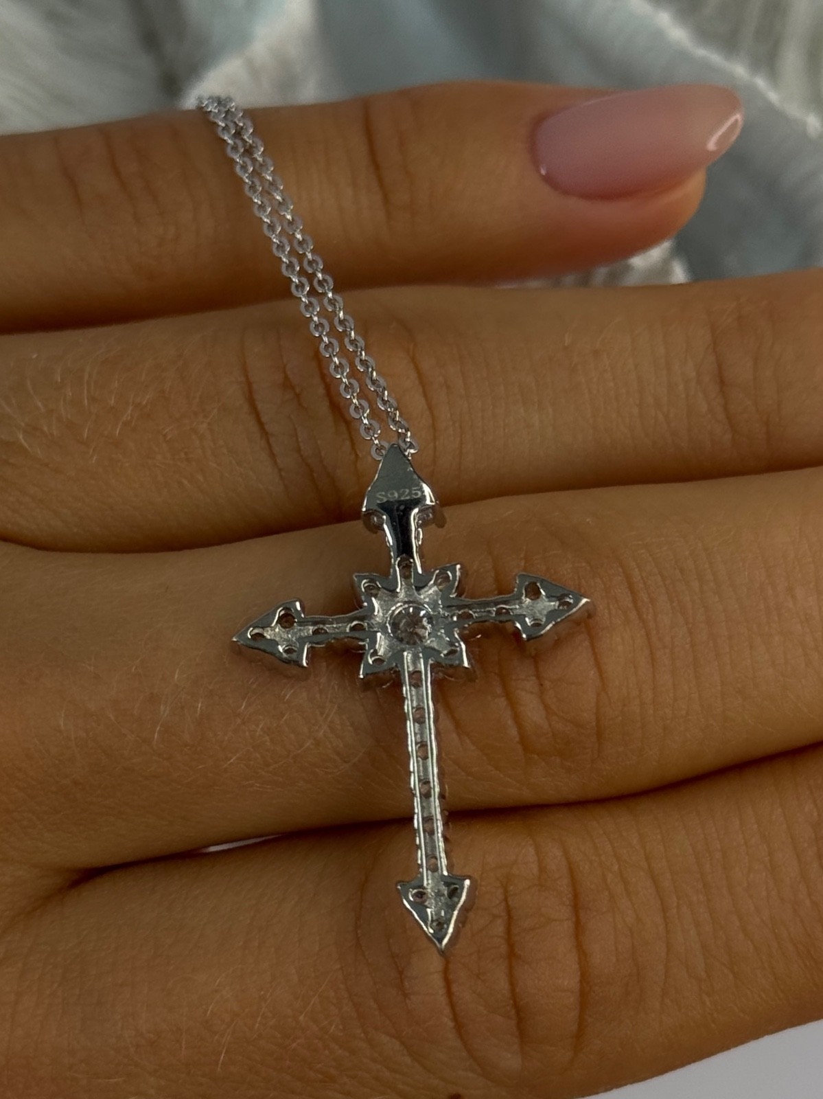 925 Sterling Silver Cross Cz Necklace Length 17/15 inch