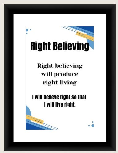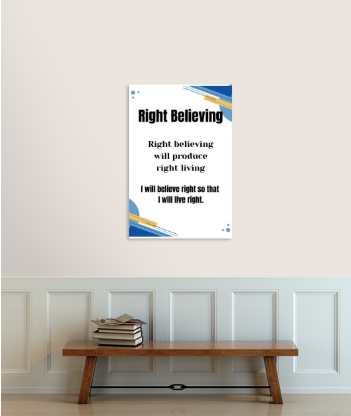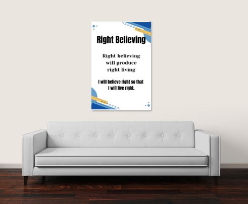 This high-resolution devotional art piece, titled Right Believing, is a visual declaration of spiritual truth: “Right believing will produce right living.” Designed with clean, modern lines and uplifting color accents, it serves as a daily reminder to anchor your thoughts in grace and truth. Whether placed in a hallway, prayer room, or living space, this artwork invites reflection and renewal.
