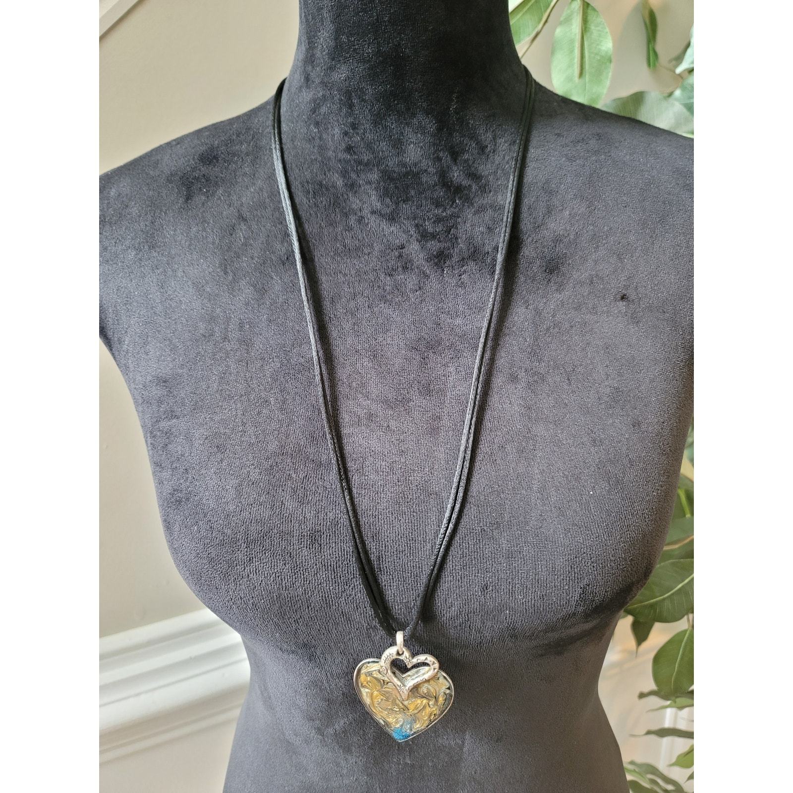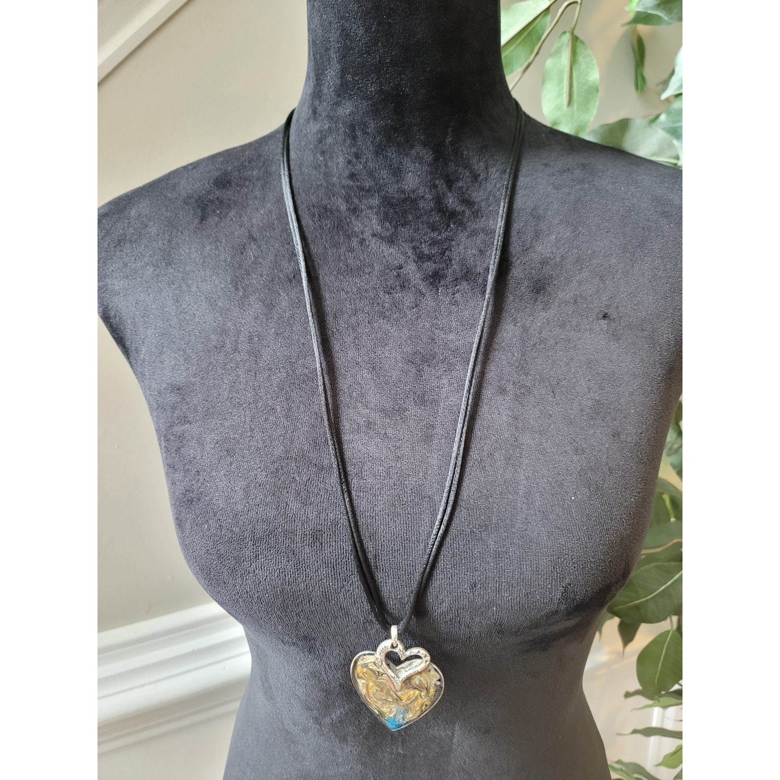 Chico's Women's Heart Pendant Necklace With Lobster Clasp Black Cord Jewelry