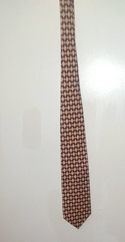 Brooks Brothers Makers Italian Silk Tan Red Blue Mosaic Medallion Diamond Tie. Approximately 61 inches long and 3.75 inches wide.