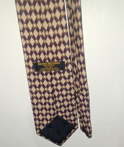 Brooks Brothers Makers Italian Silk Tan Red Blue Mosaic Medallion Diamond Tie
