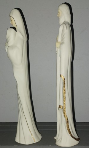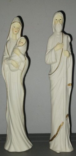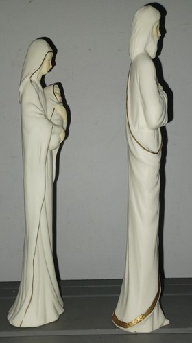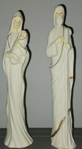Carlton Cards Figurine Mary Jesus and Joseph Nativity 10 in tall thin White Gold
