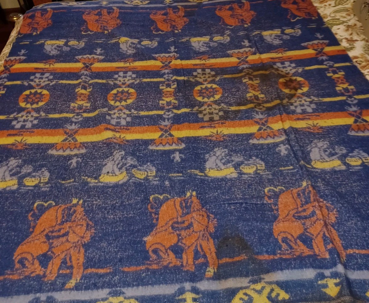 Vintage Beacon Camp Blanket Native American Smoke Signals Tee Pee Double Sided