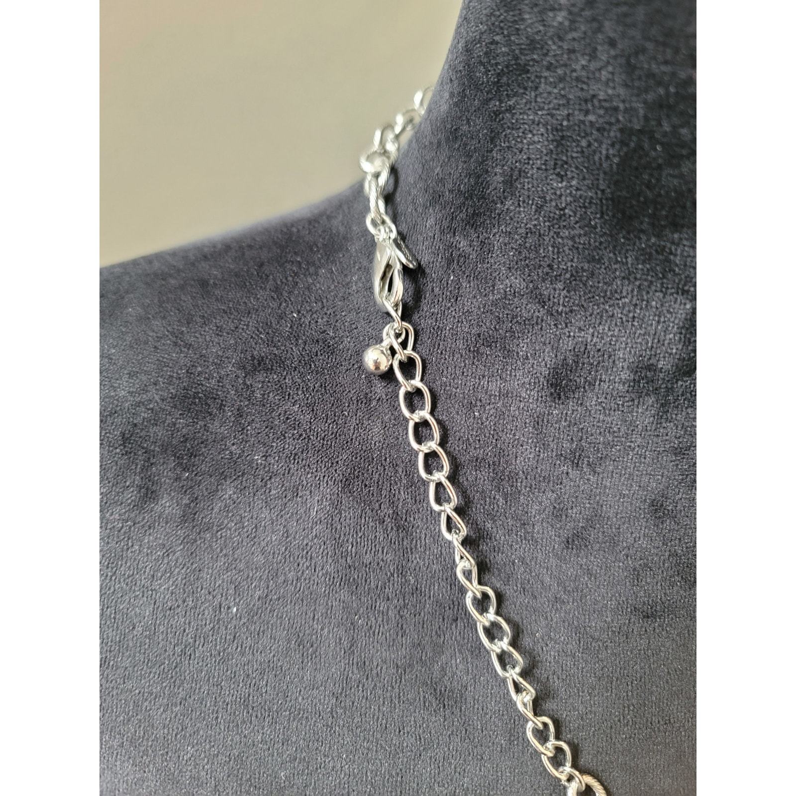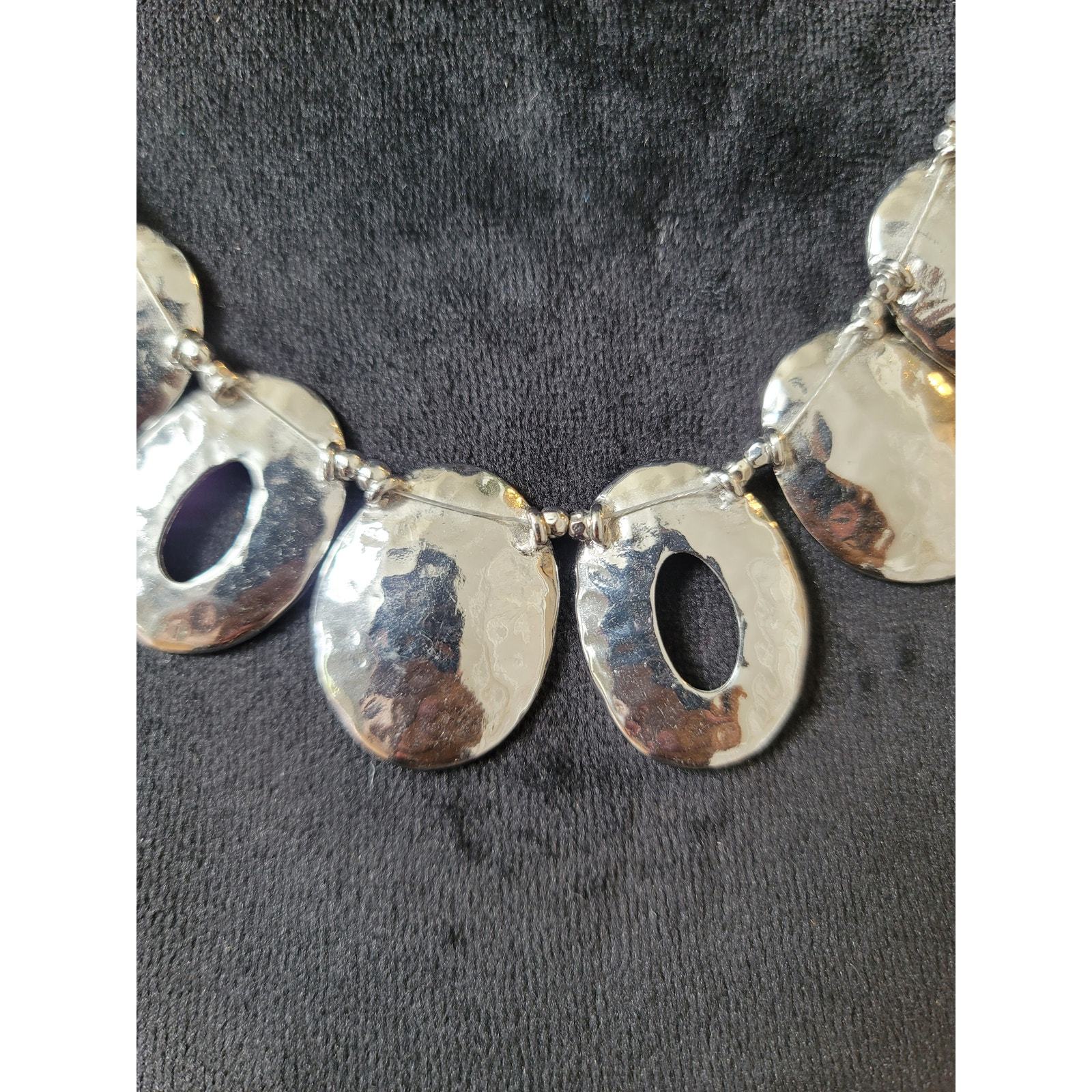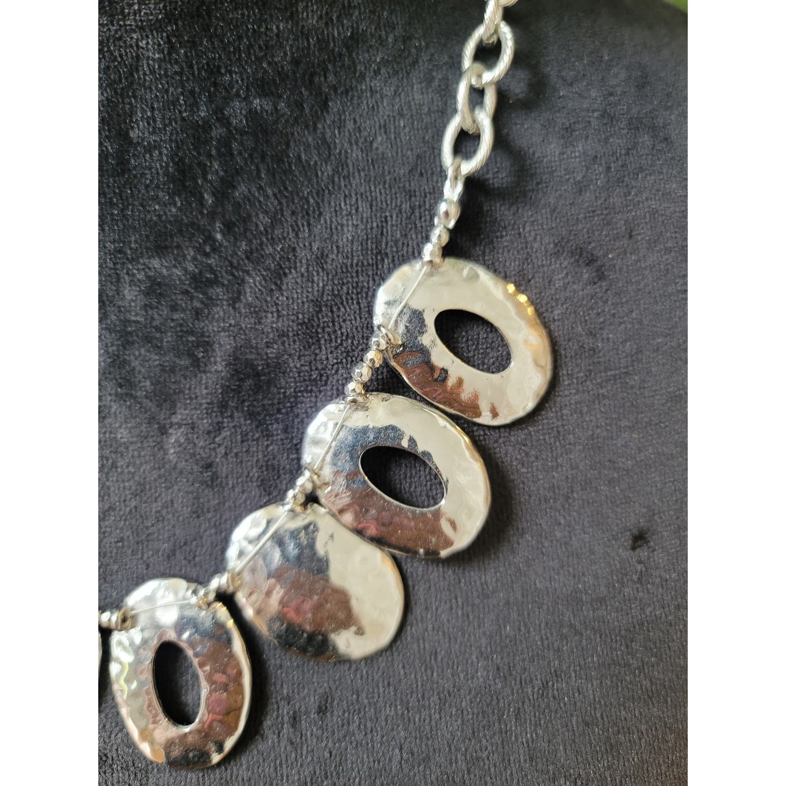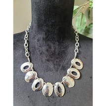 Chico's Hammered Silver Oval Statement Necklace With Lobster Clasp Chain Jewelry added to cart.