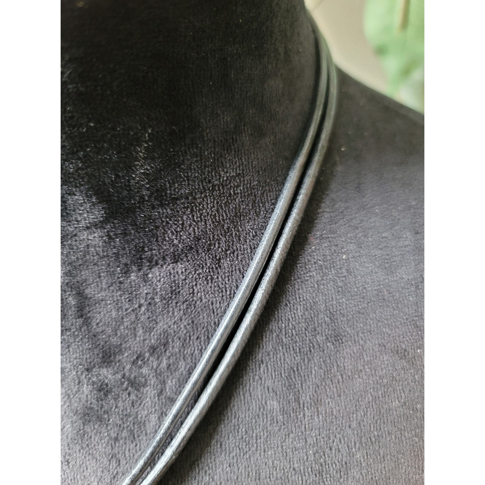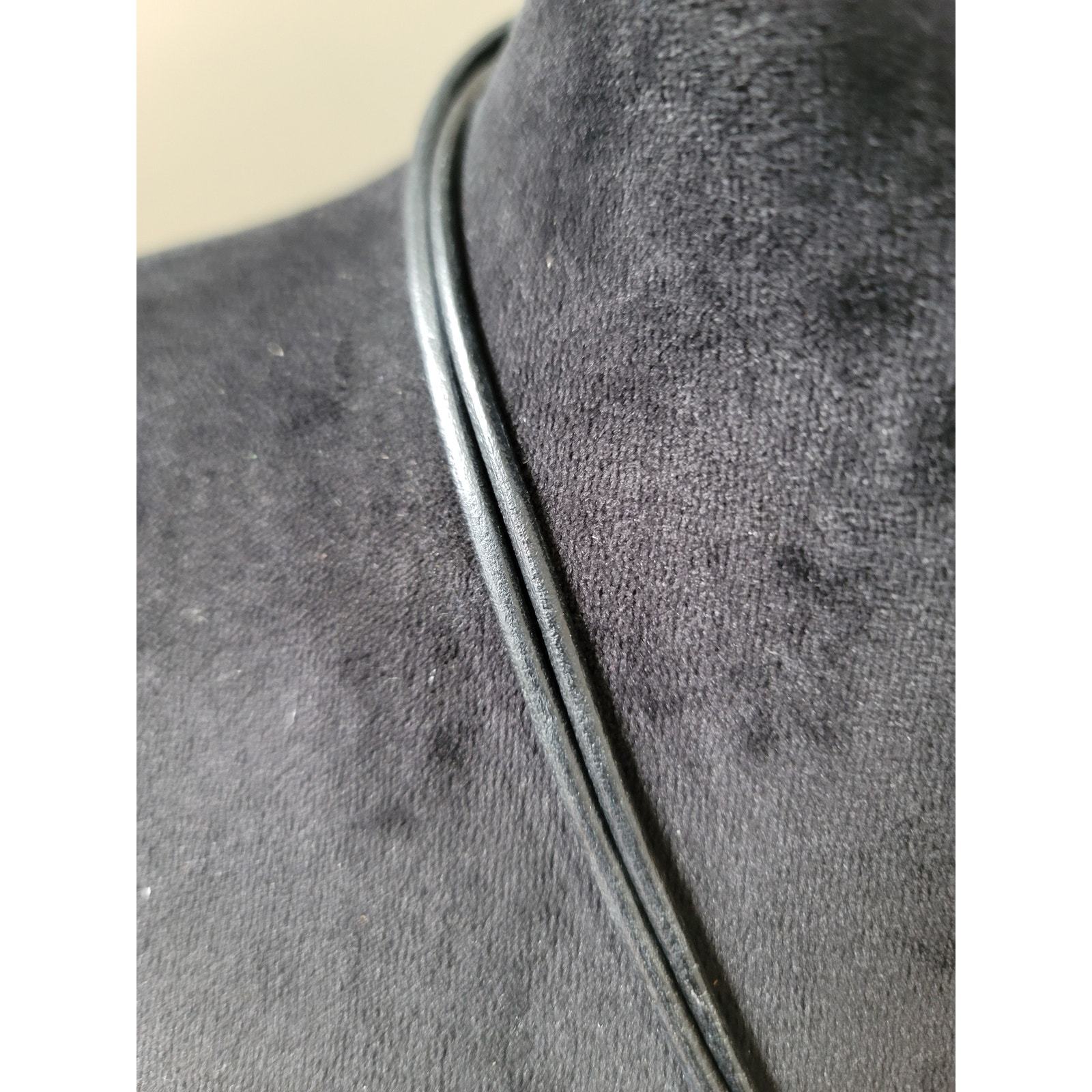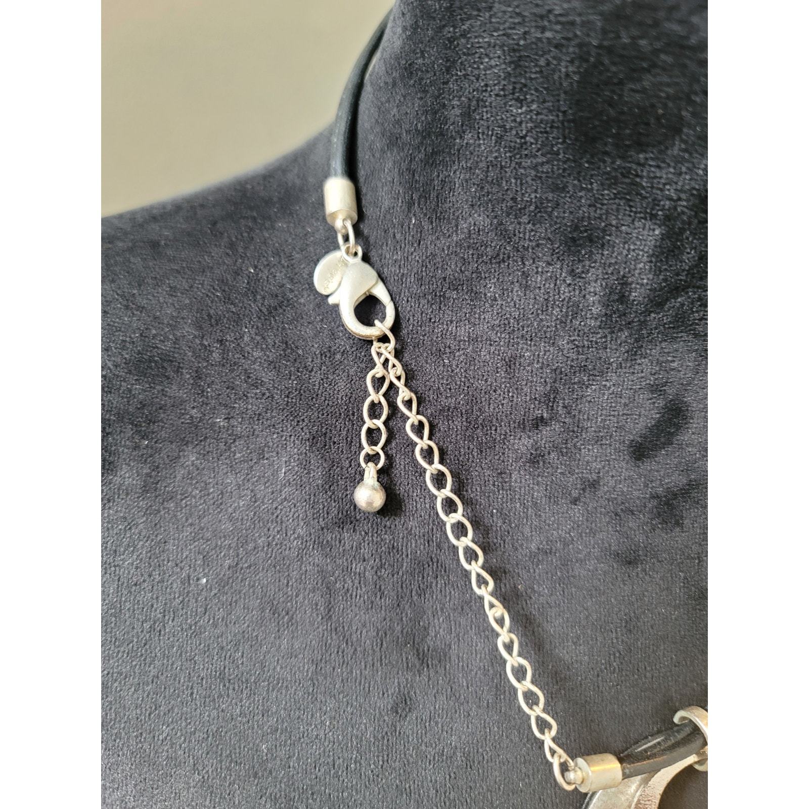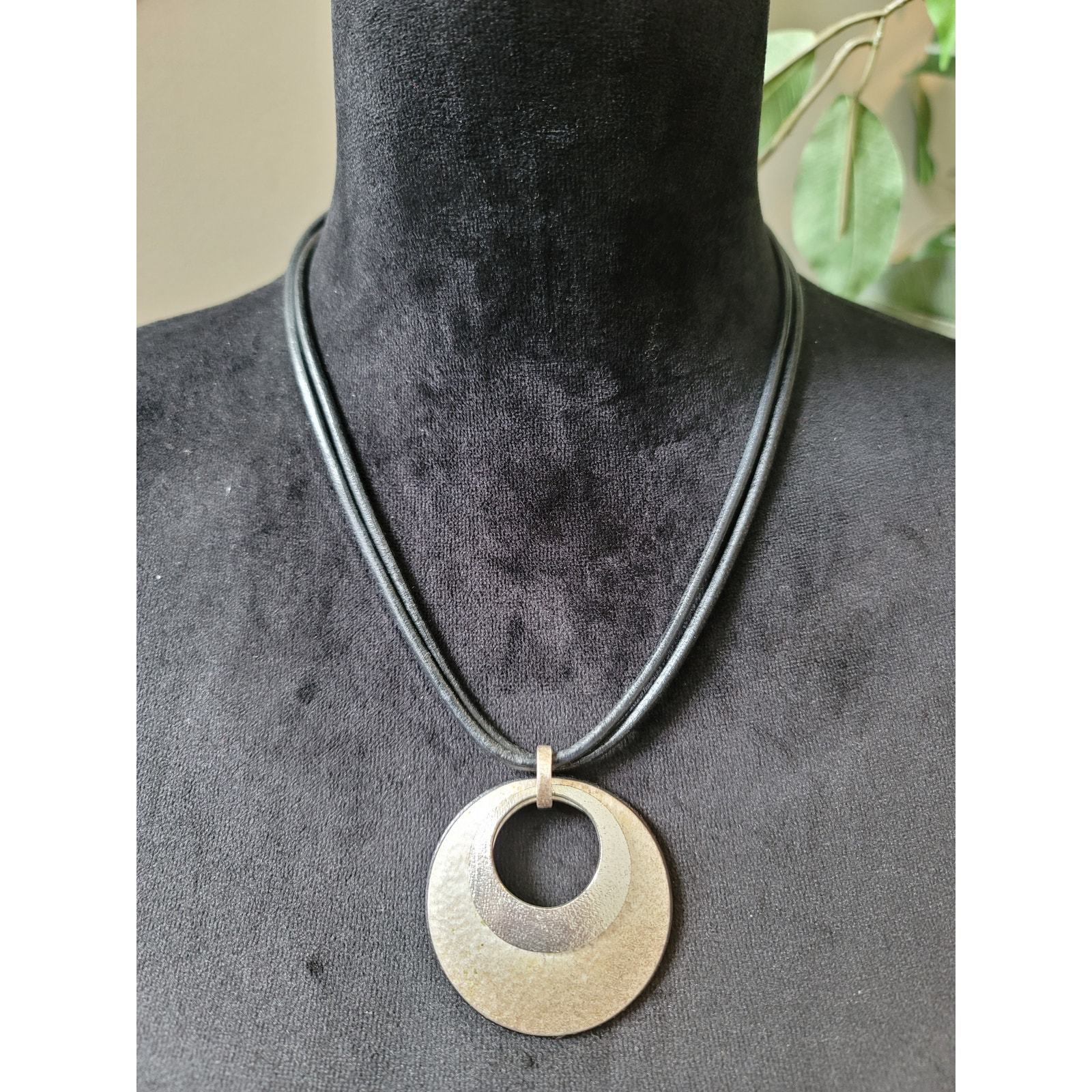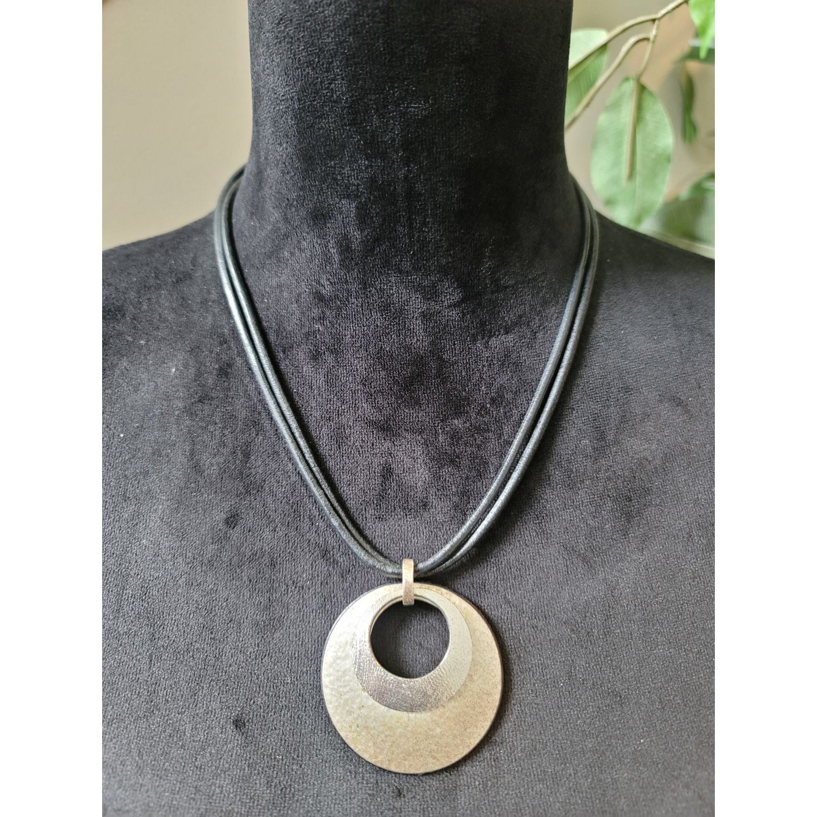 Chico's Pendant Necklace With Round Silver Tone Disc On Black Cord Lobster Clasp