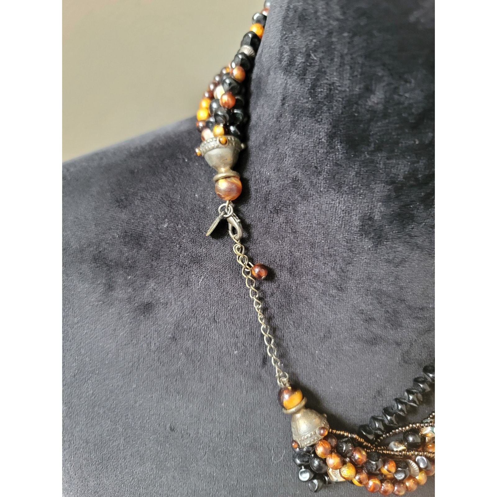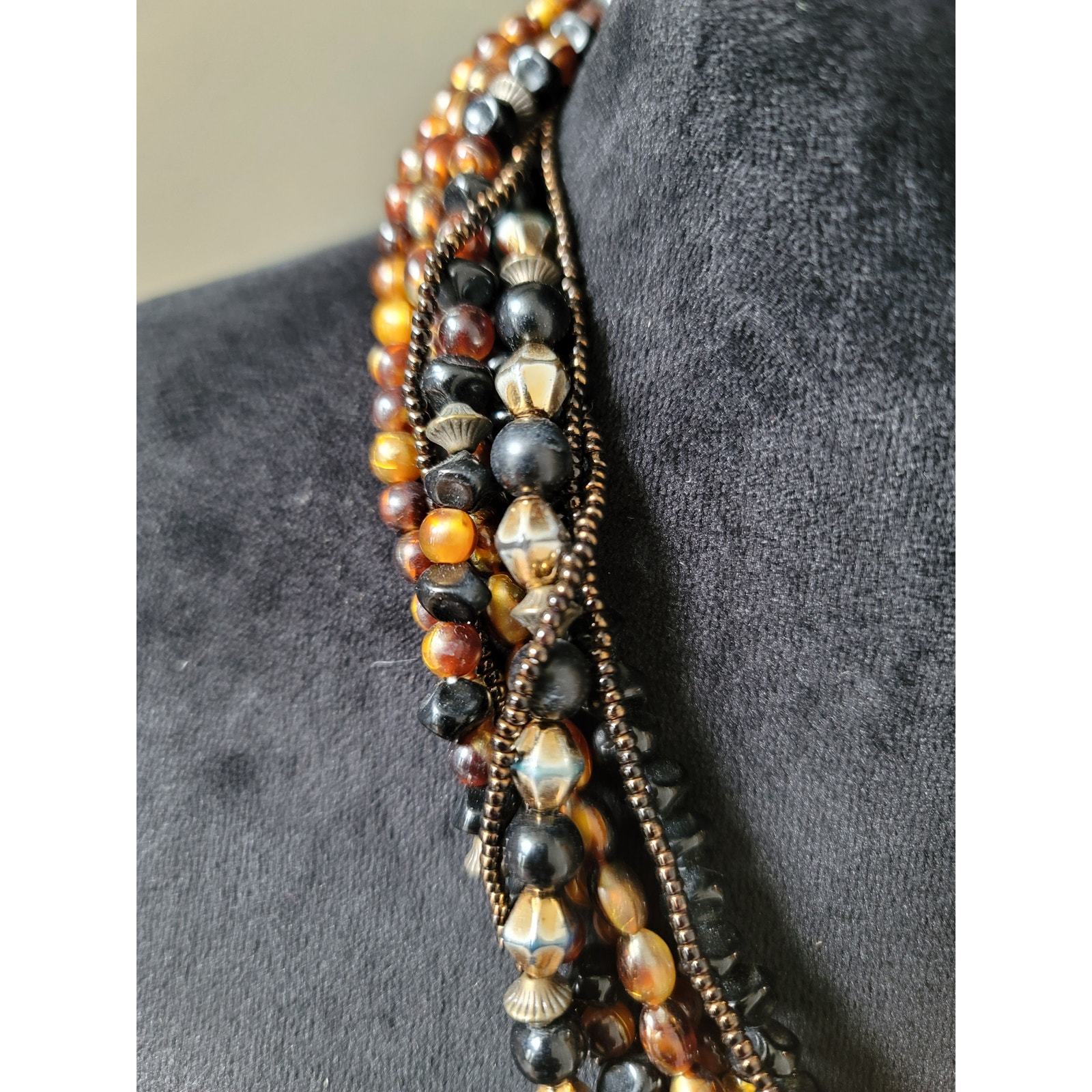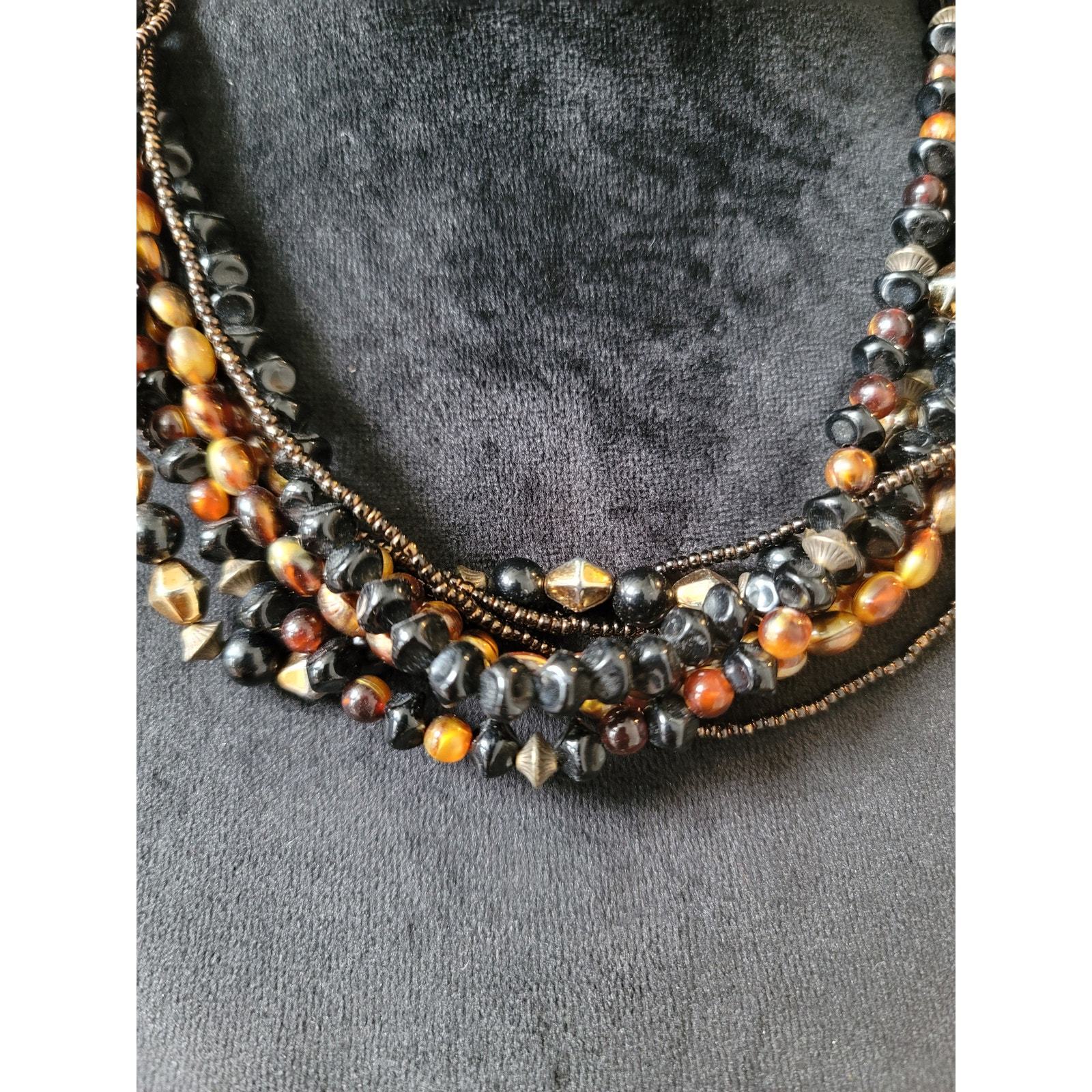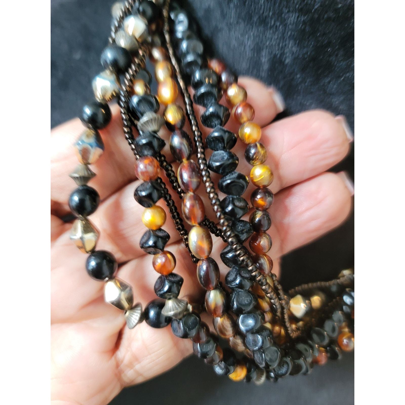 Chico's Women Multi Strand Beaded Necklace Black Brown Gold Tones Lobster Clasp
