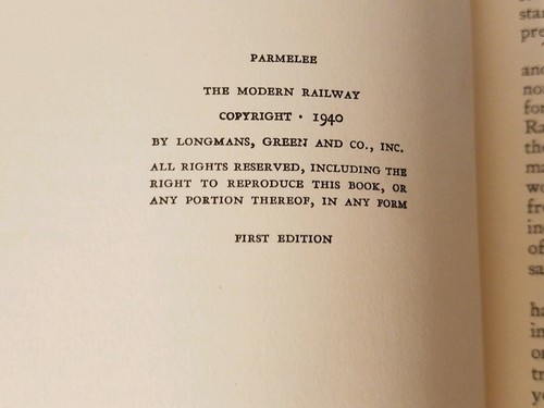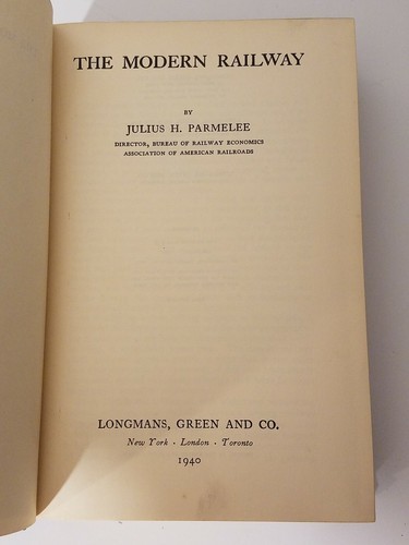 A la venta es una primera copia de The Modern Railway de Julius Hall publicada por Parmelee Longmans Green en 1940.