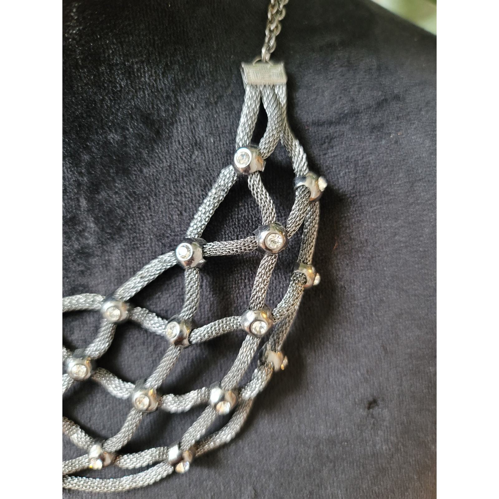 Serena Women's Silver Tone Mesh Net Bib Necklace With Rhinestone Accents