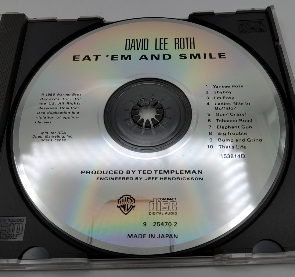 Own a piece of rock history with David Lee Roth?s iconic solo debut ?Eat ?Em and Smile? on original 1986 Warner Bros CD ? Made in Japan pressing.