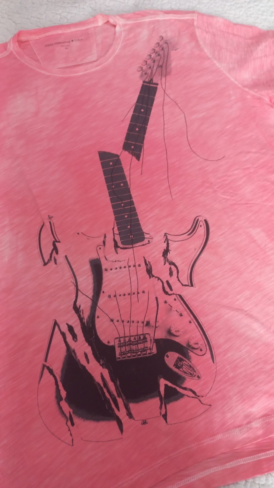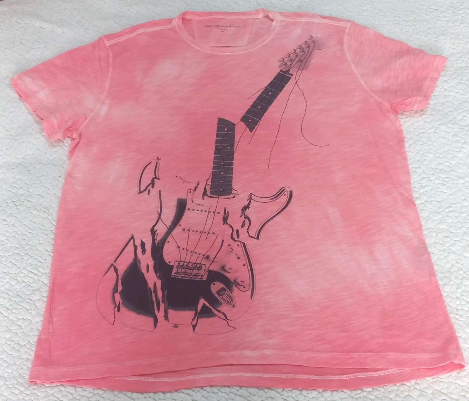 John Varvatos Star USA Men's Stone Wash Pink Broken Guitar Graphic T-Shirt XL