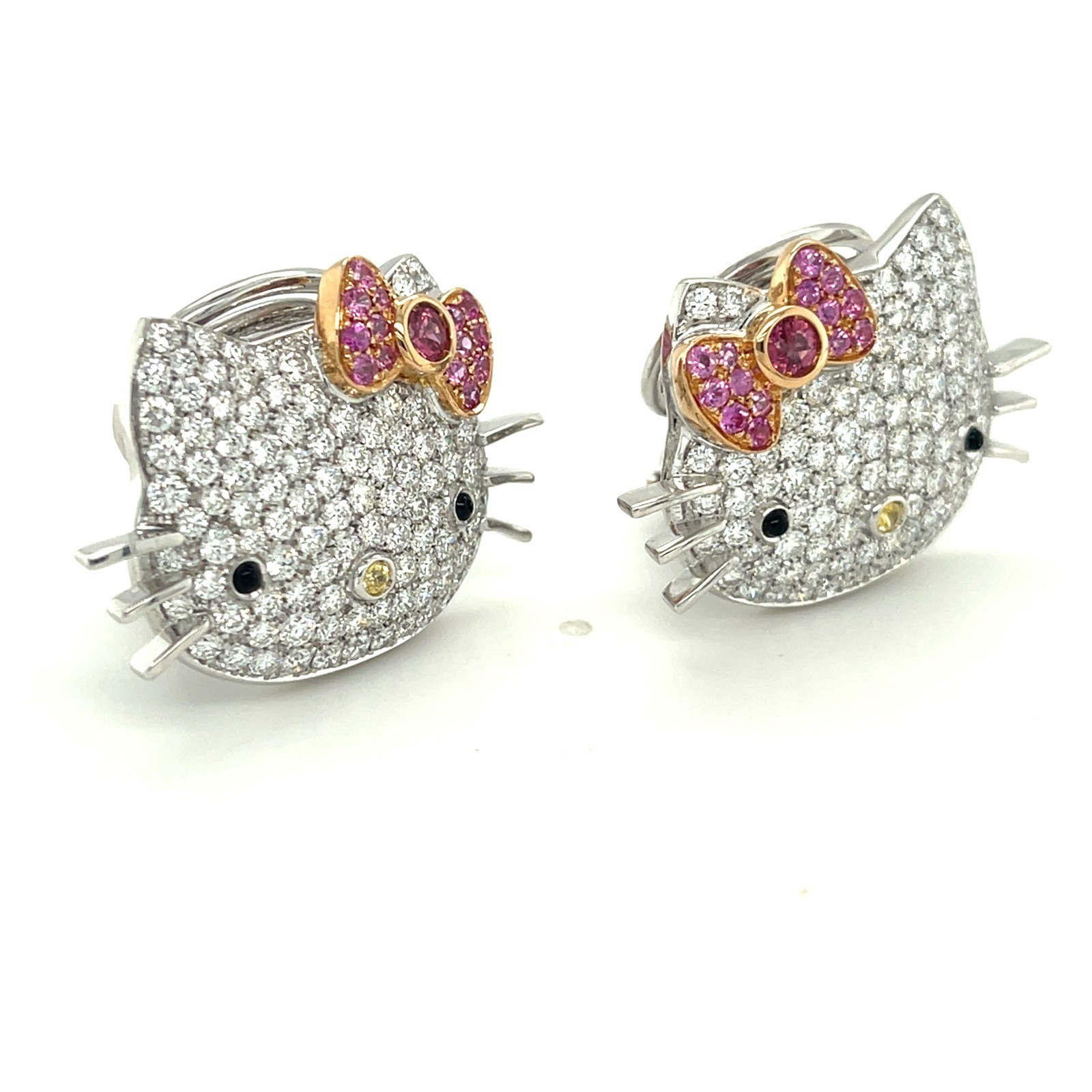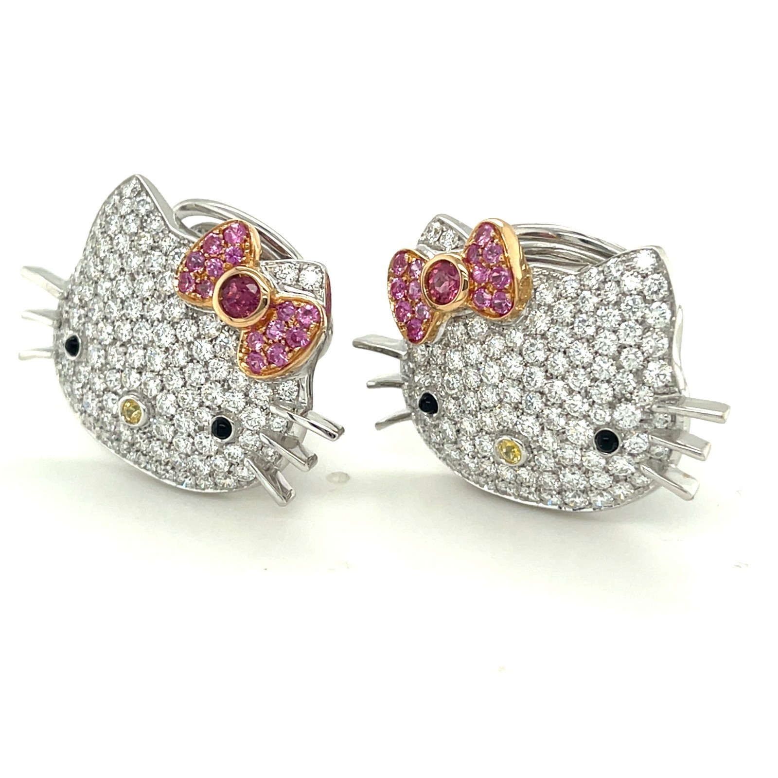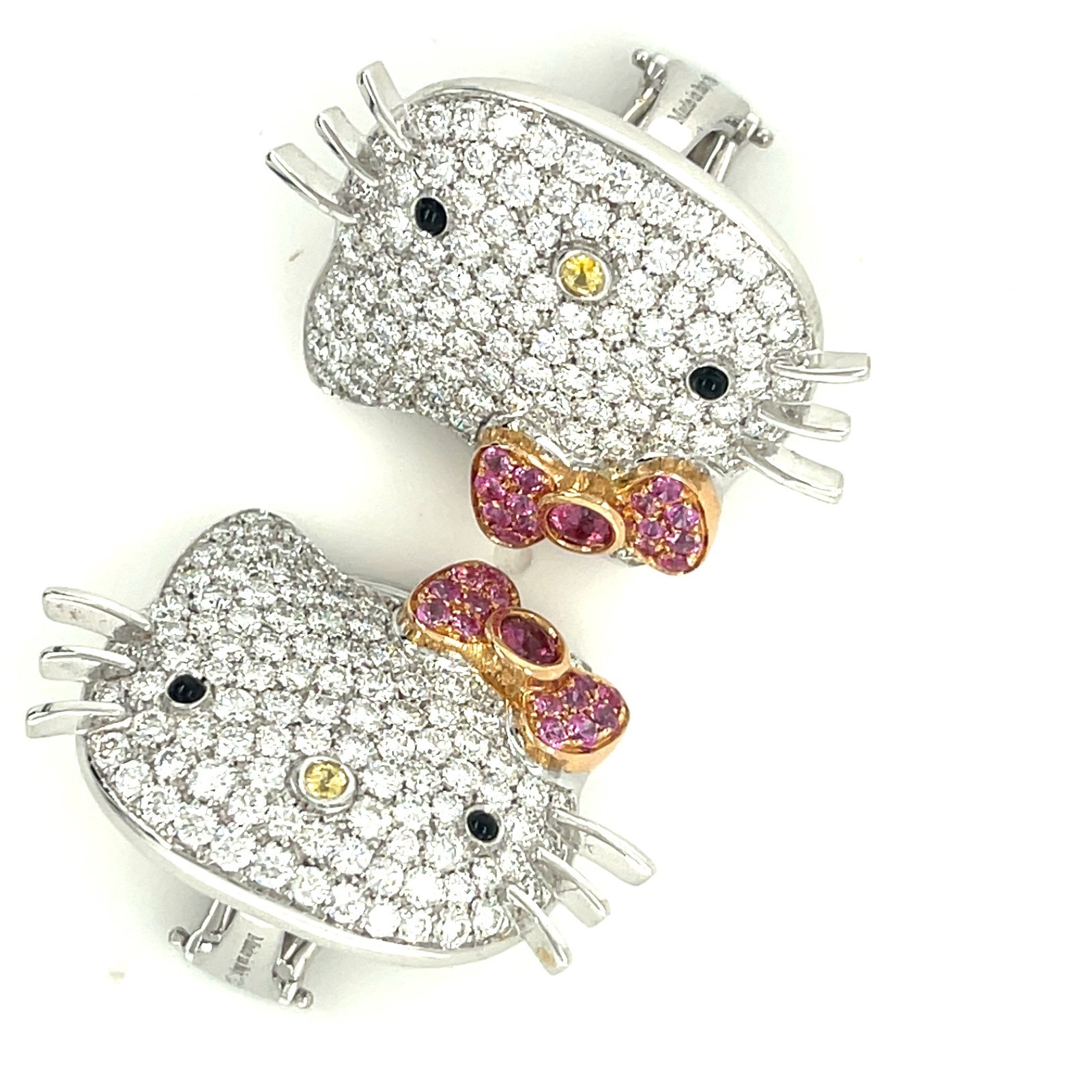 18K White Gold Happy Kitty Appx 5.4 CT Diamond Huggie Clip-on-Ohrringe Wunderschon!
