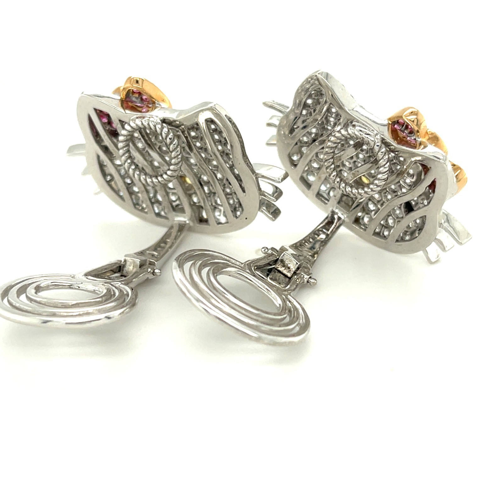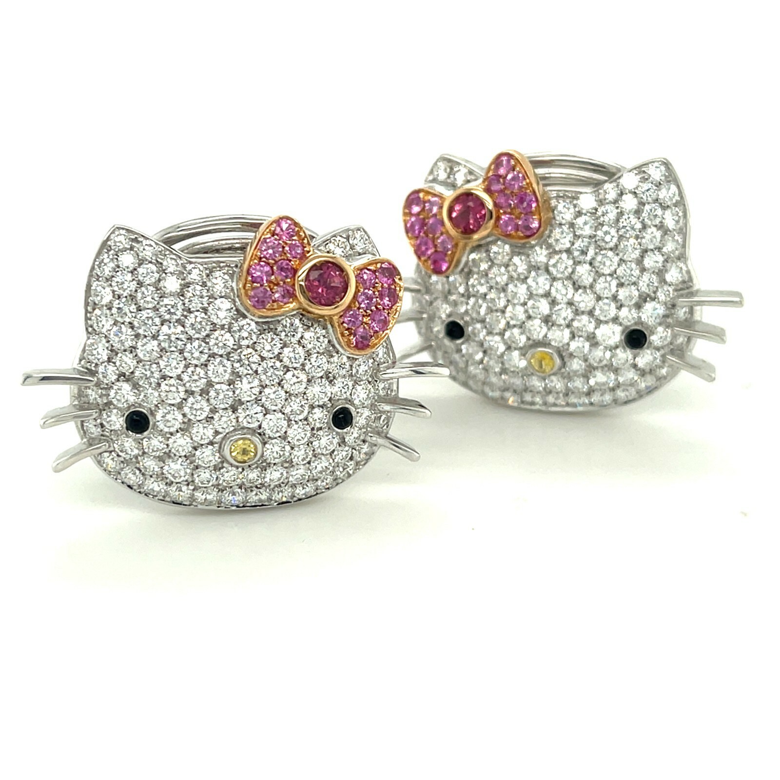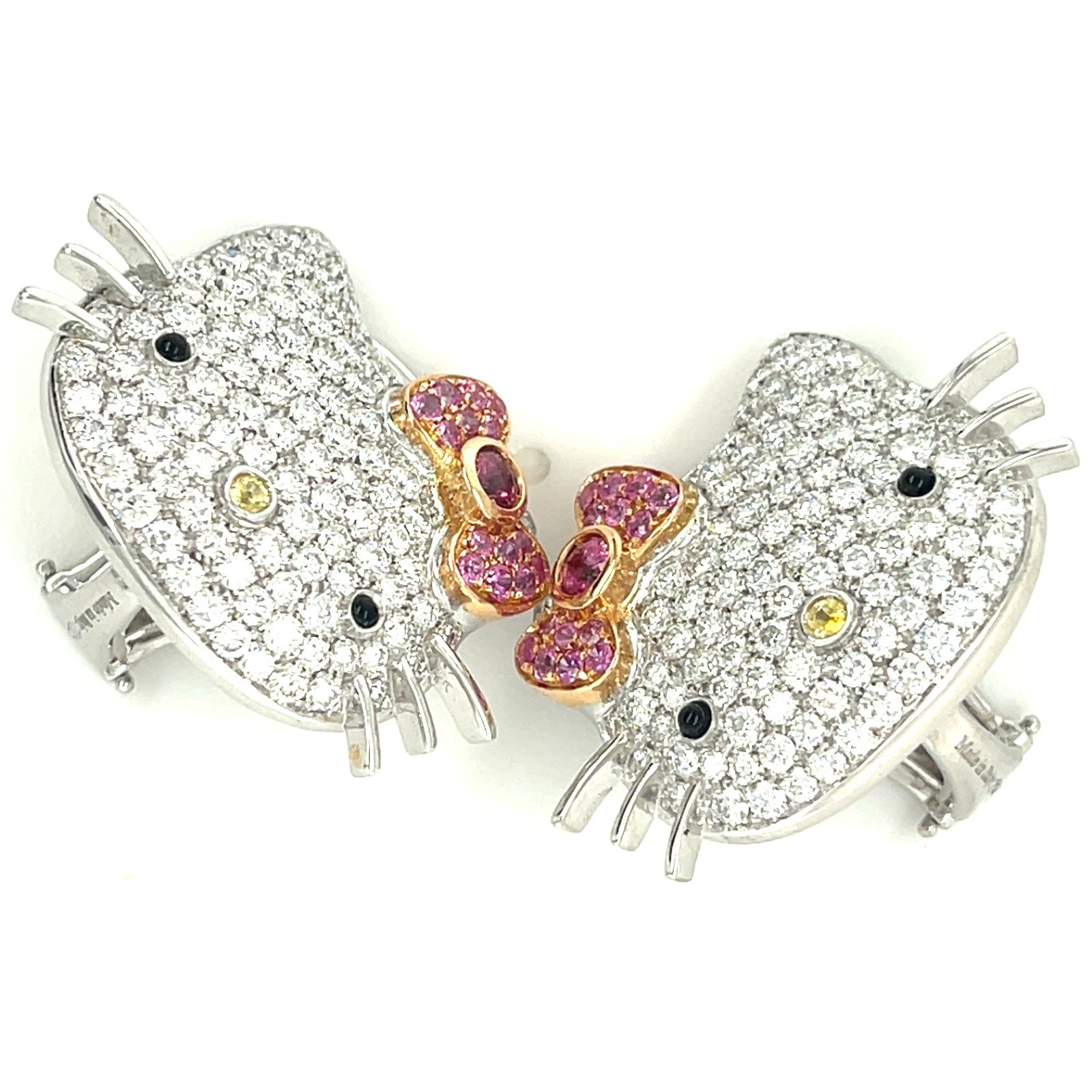 18K White Gold Happy Kitty Appx 5.4 CT Diamond Huggie Clip-on-Ohrringe Wunderschon!