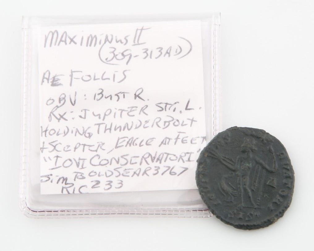 309-313 Ad Romanzo AE Follis Moneta Vf-Xf Maximinus II Daia Giove Aquila RIC-233