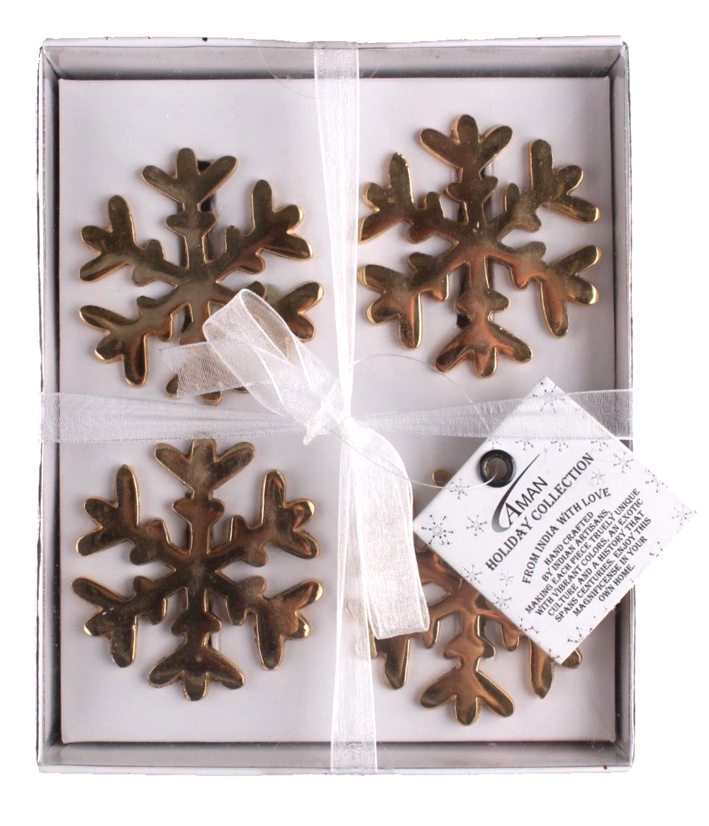 Aman Imports Set Di 4 Portatovaglioli A Forma Di Fiocco Di Neve Color Oro Natale