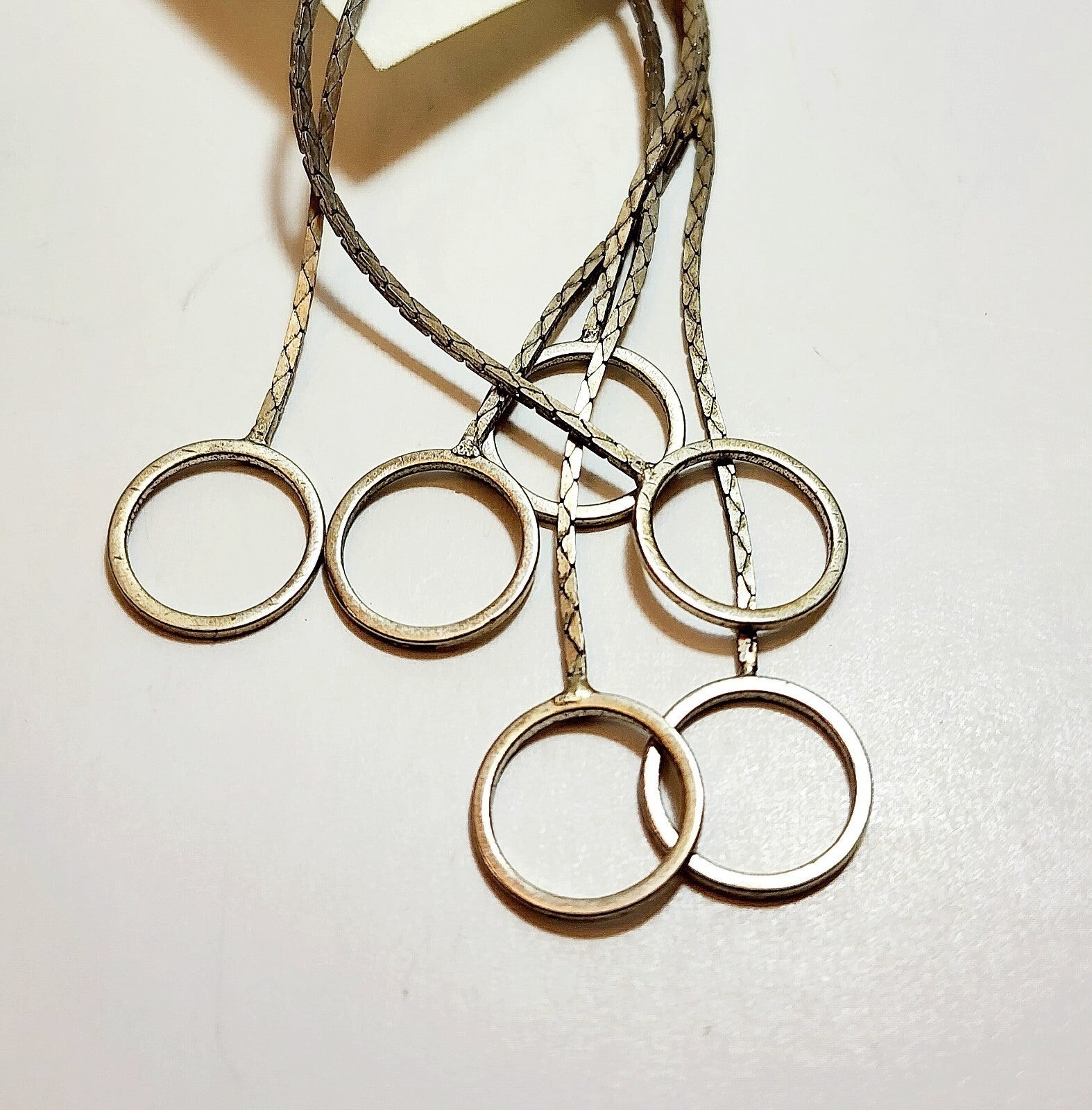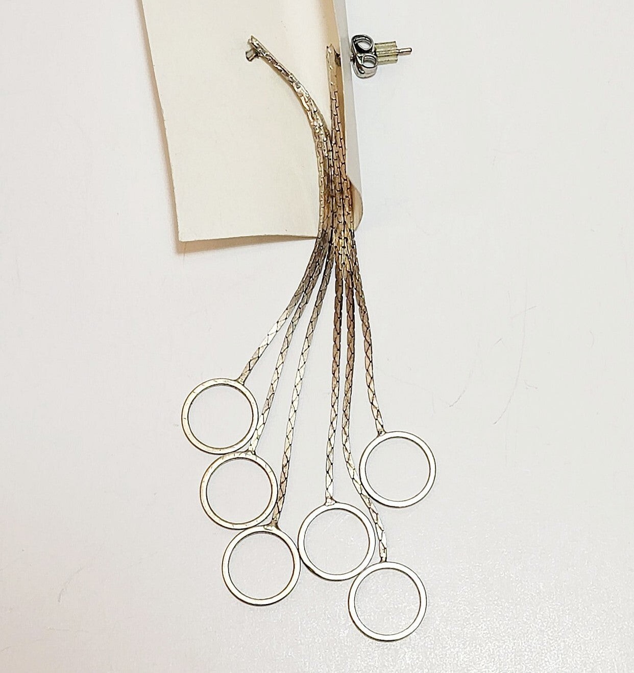 Vintage Long 3 Dangle Earrings Costume Handmade Circles B66 Maine