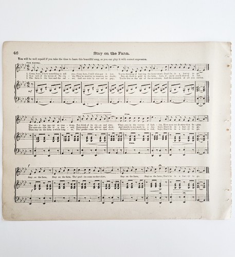 1886 Stay On The Farm Sheet Music Parlor Organ Victorian 11.5 x 9" Ephemera
