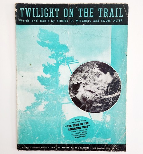 1936 Henry Fonda Twilight On the Trail Antique Sheet Music Soundtrack Paramount