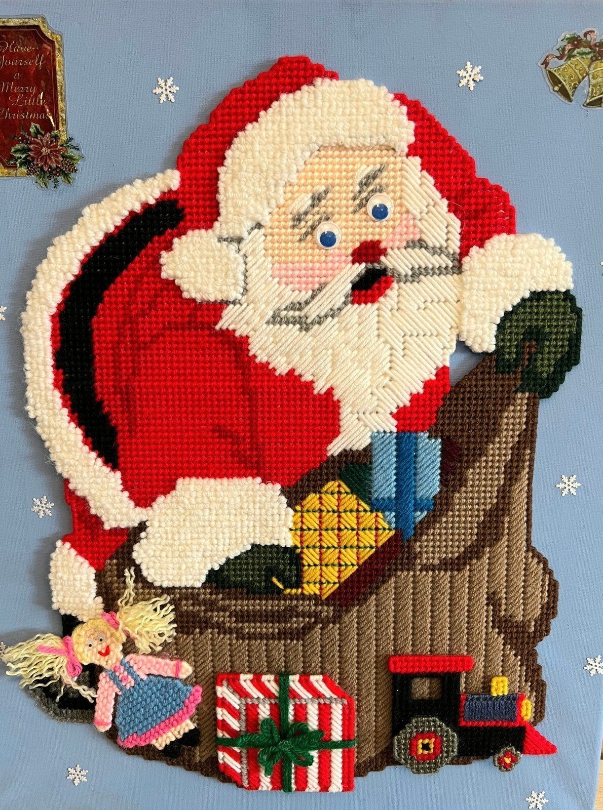 Santa Claus Christmas Vintage Handmade Cross Stitch Canvas Art Wall Decoration