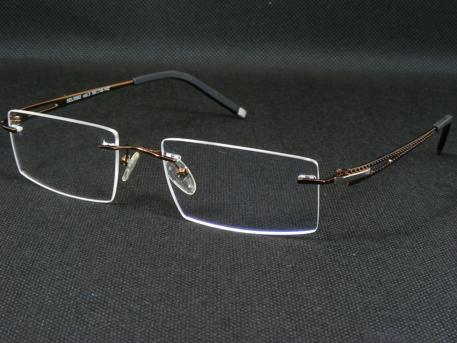 SELECTRA SEL5582 col. 3 AUNTIQUE BRONZE EYEGLASSES GLASSES RIMLESS METAL 54-18-142mm. (X1138) Actual photos of these glasses. This is exactly what you will receive. Notes: no scratches on the frame / there are reflections from the photo lamps Style and comfort in everyday use. A pair of glasses is not just an accessory; it provides the first hint of an individual?s personality. The wearer must enjoy a frame and feel that it is completely consistent with his or her look and mindset. A great pair of glasses, with all its detail and complexity must above all be an extension of the individual. Returns are always FREE for any reason. If you don't like it, simply click "Item no longer needed". Item should be returned within 60 days as UNUSED in original packaging. If you have any questions pl