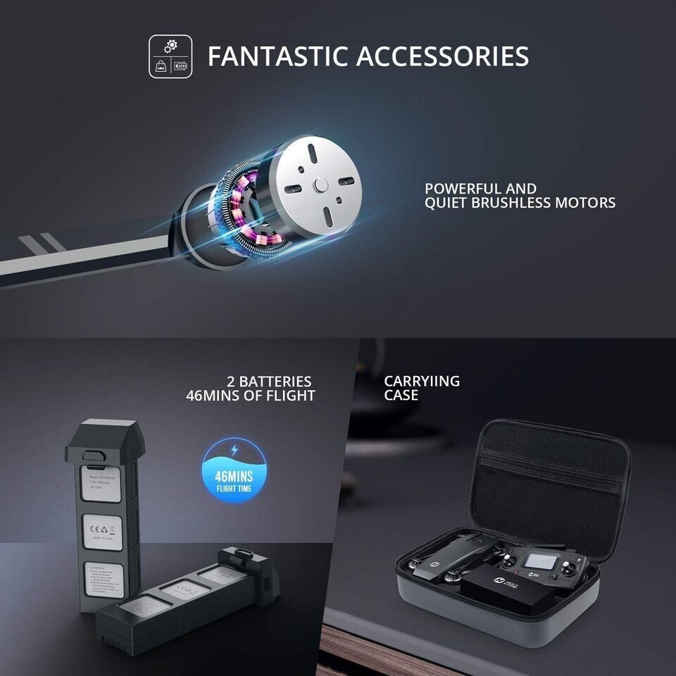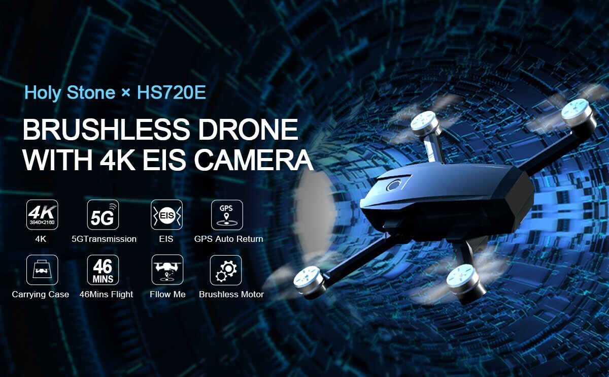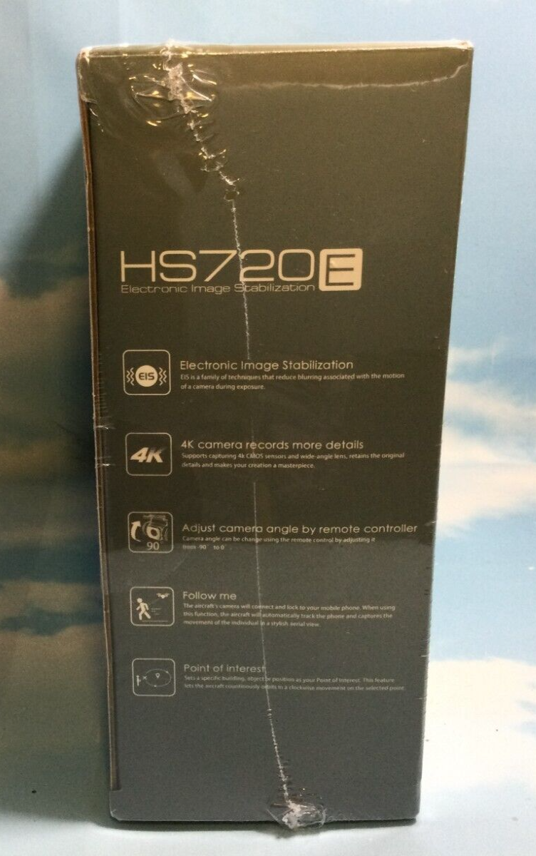 You are looking at a new Holy Stone HS720E Foldable GPS Drone with a 4K EIS UHD 130FOV Camera, Brushless Motors, Auto Return Home, 5G WIFI FPV, Follow Me Mode, two Batteries and a Carrying Case. The HS720E Foldable Drone has a 4K EIS Anti-Shake Camera with Sony Sensor. The EIS (Electric Image Stabilization) technology reduces video blurring. The Sony Sensor is equipped with advanced image-capture technologies for superior image quality. The 4K camera (3840 x 2160) catches much more details. Videos can be recorded with 1080p@60fps or 4K@30fps. It has 5G Wi-Fi FPV Video Transmission and 90adjustable lens. Just download the App, connect your smart device to the transmitter and watch where you fly live. GPS, Optical Flow Positioning and now EIS makes the HS720E a great Drone to take pictures and videos. It has GPS Return to Home insuring the HS720E will automatically return whenever the Battery is low, signal is lost or you press one key return. Holy Stone claims the 7.4v 2800mah Battery has a 23 minute Flight Time so with 2 Batteries that's 46 minutes! To many features to list like TapFly, Point of Interest and Follow Me Modes. Check out some videos and read the manual before flying. Comes with everything shown in the pictures. Take a look at my other listings. If you have any questions feel free to ask.