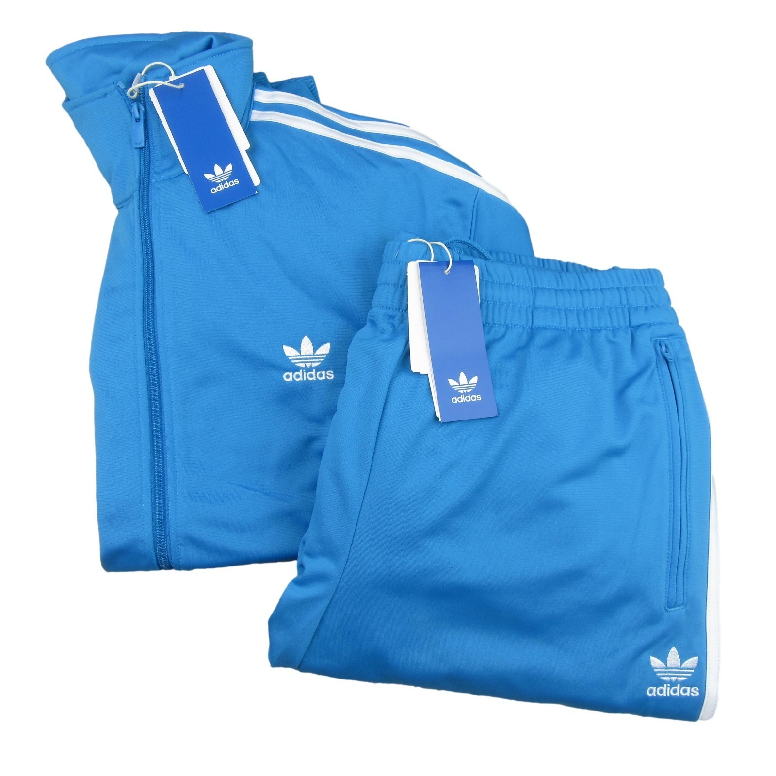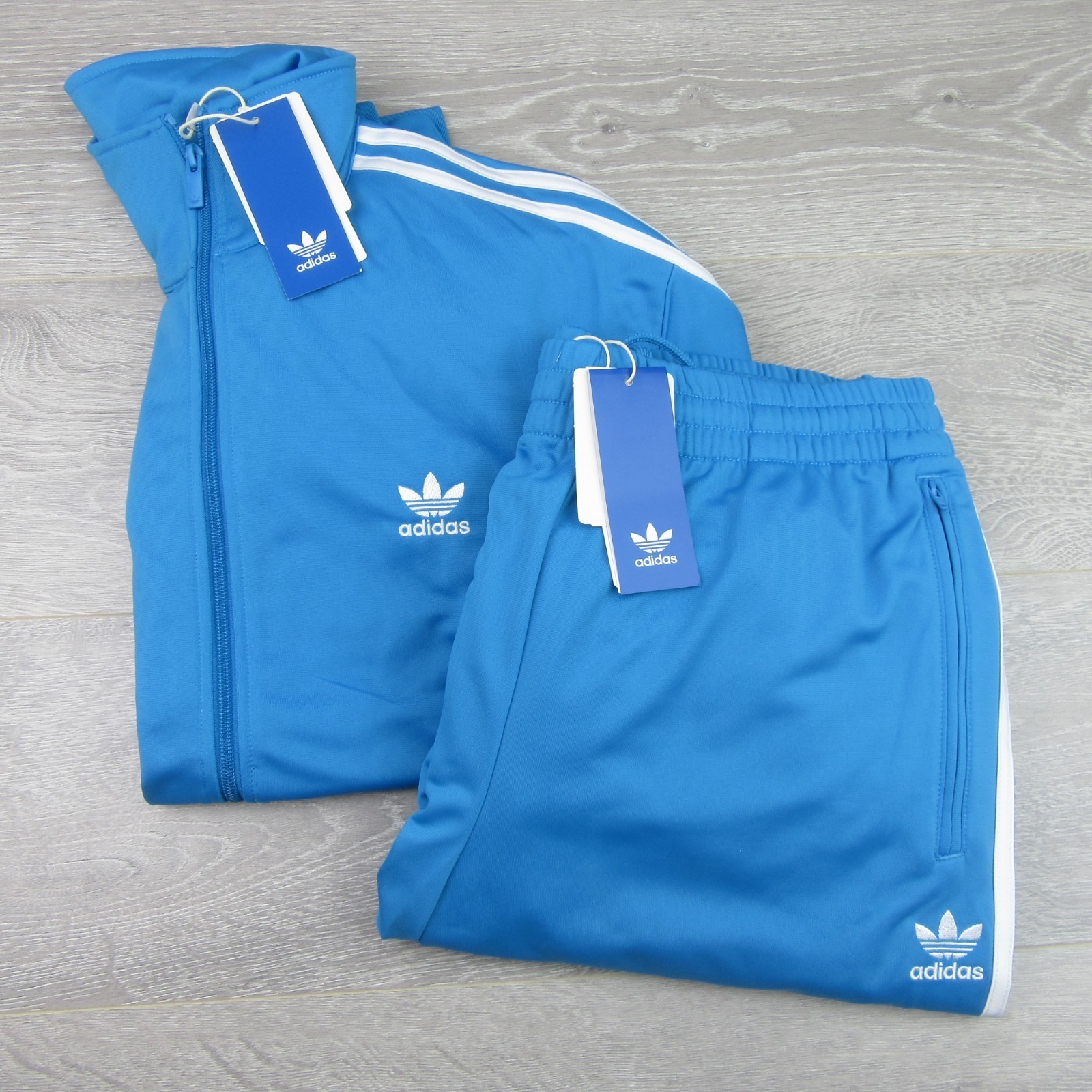 Adidas Originals Firebird Track Pants Full Zip Track Jacket Jump Suit Cyan Blue White 3 Stripes