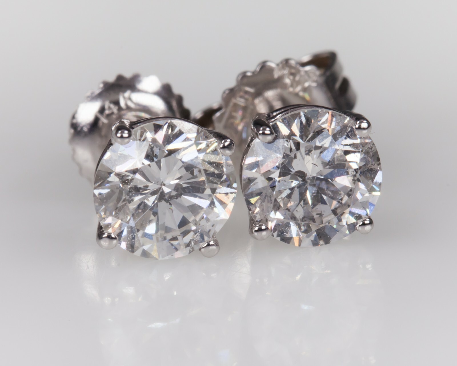 Wunderschone 2,25 ct runde Diamantohrringe in 14 Karat Weiß Gold H Farbe Si3
