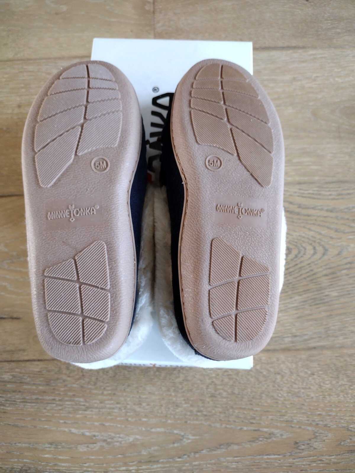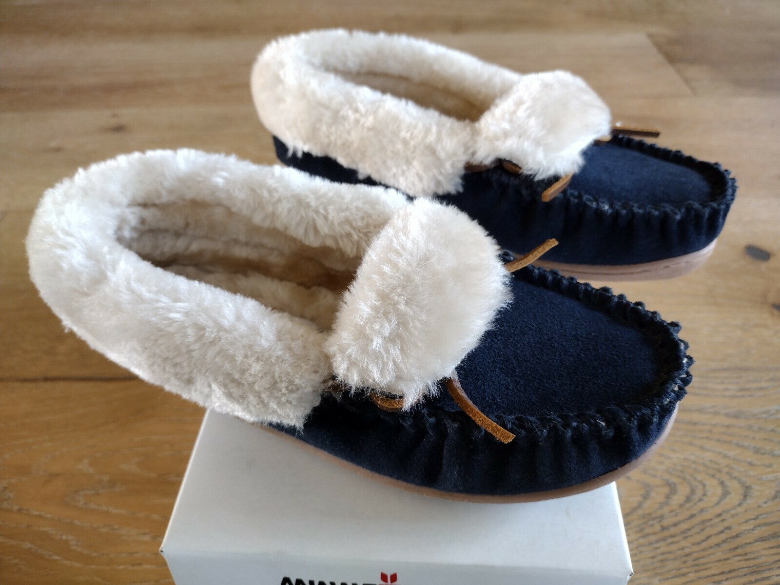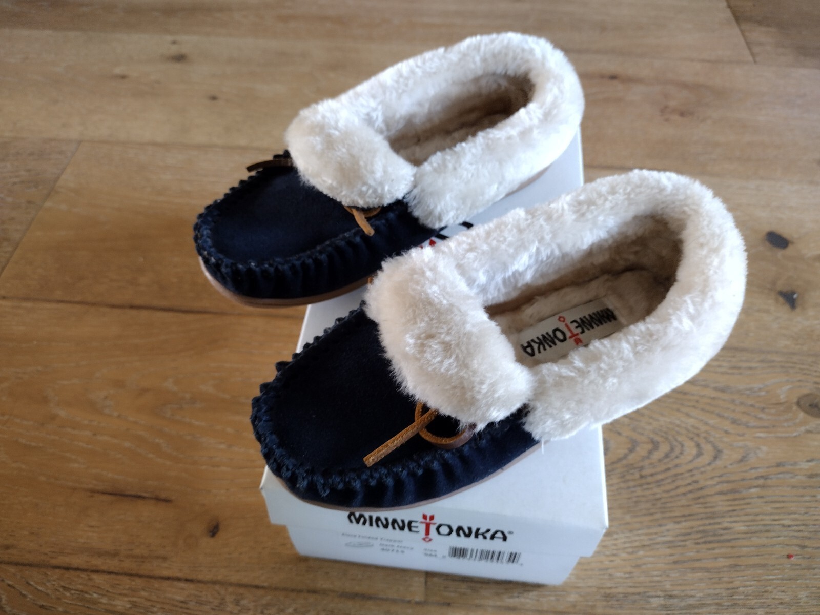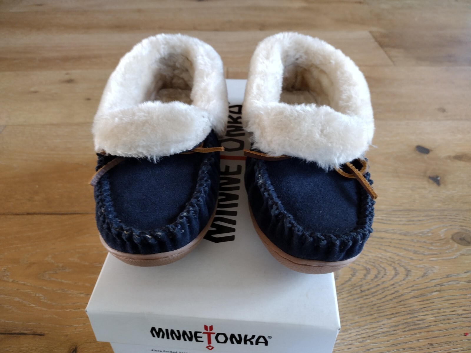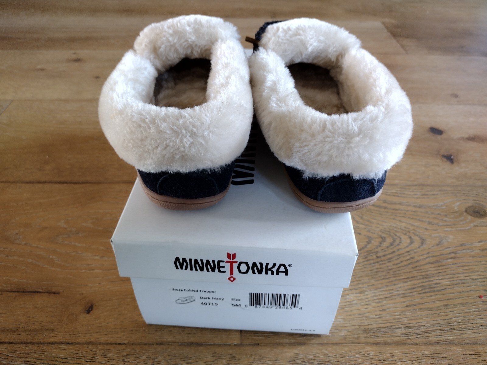 Minnetonka Women Dark Blue Folded Flora Trapper Moccasins Size 5M NIB