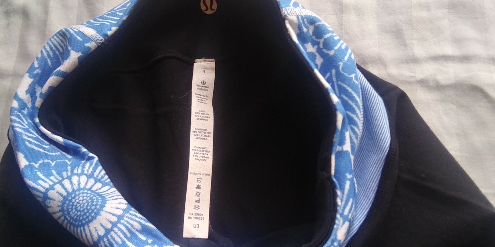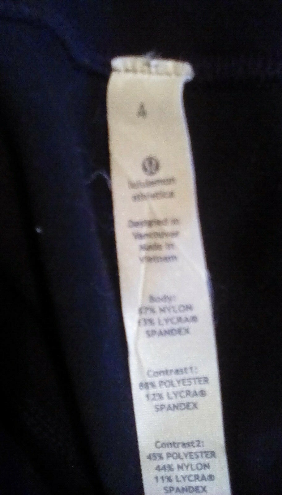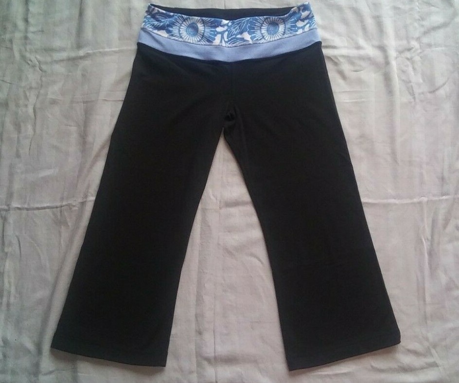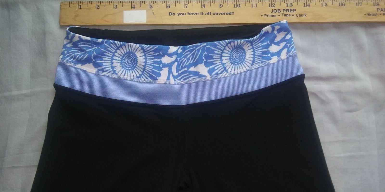 Lululemon Women Black Capri Yoga Leggings Blue Patterned Waist Band Size 4 EUC
